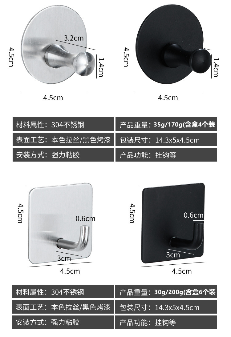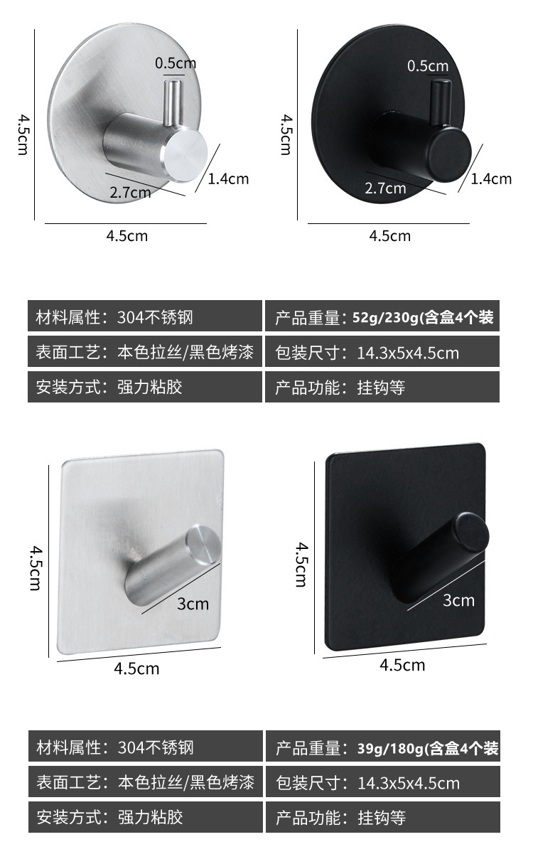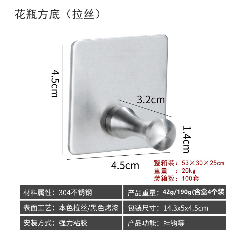 크로스 보더 304 스테인레스 스틸 후크 강한 페이스트 내 하중 주방 후크 비 천공 후크 단일 후크 공장 직판