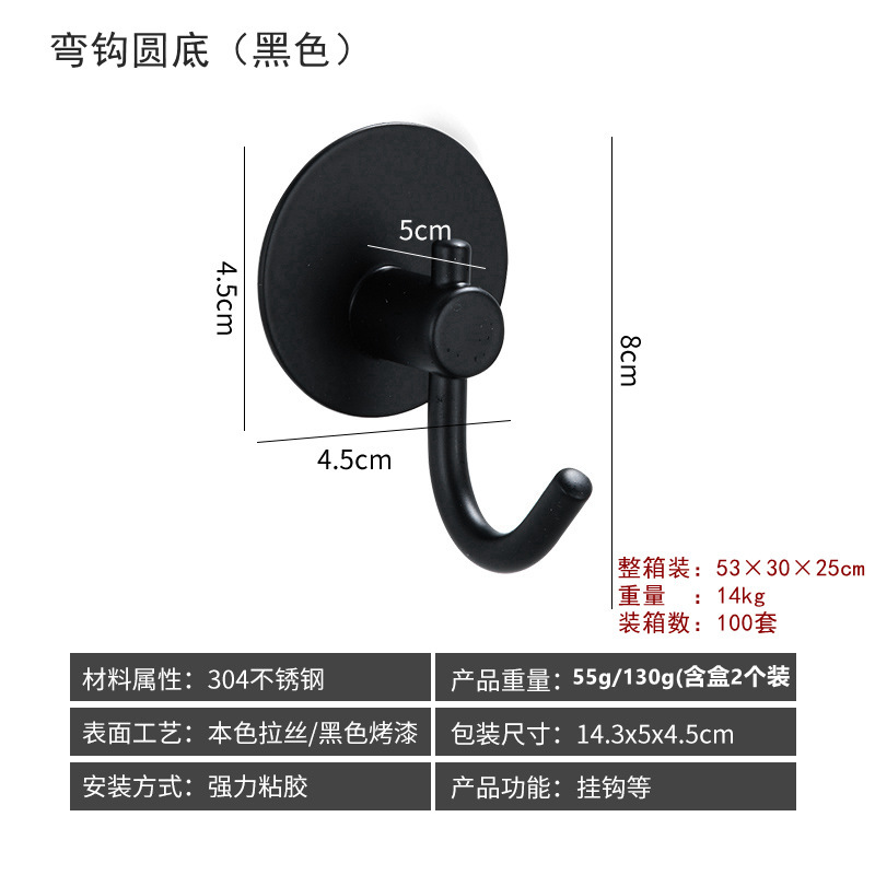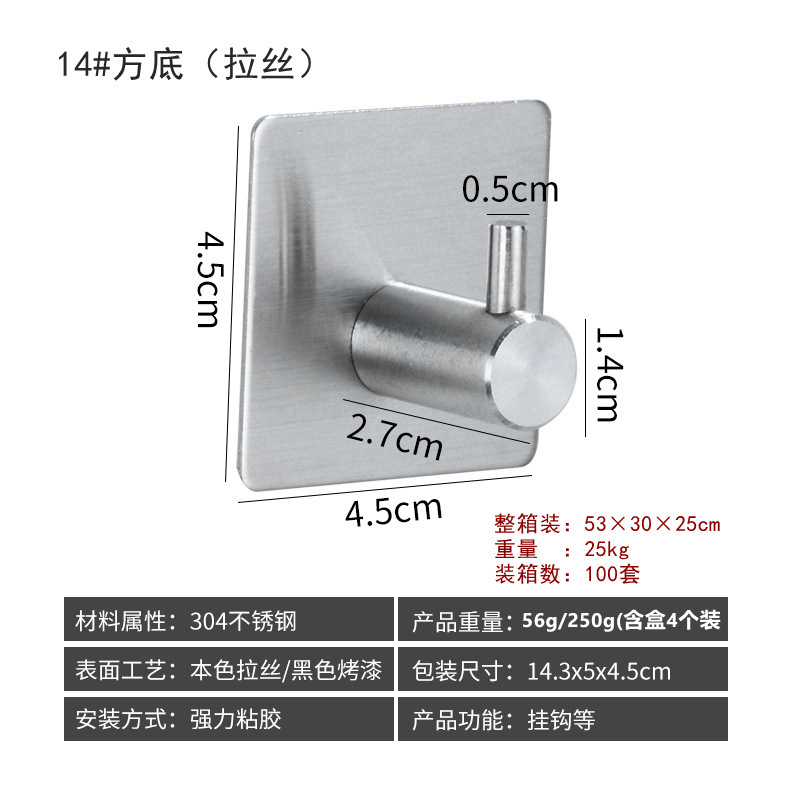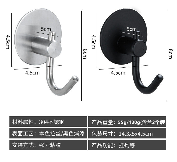 크로스 보더 304 스테인레스 스틸 후크 강한 페이스트 내 하중 주방 후크 비 천공 후크 단일 후크 공장 직판스토어 가기