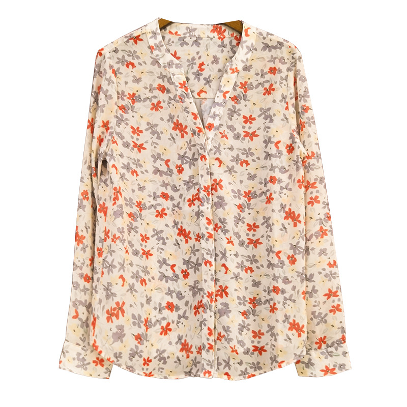 부드러운 프렌치 레트로 셔츠, 독특한 디자인의 달콤한 셔츠, 틈새 시장의 쉬폰 플로럴 셔츠, 여성용 가을 신상품스토어 가기