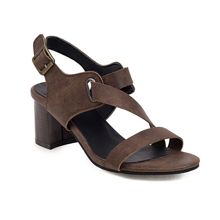 아마존 소원 국경 간 대외 무역 대형 신발 여성용 여름 새로운 두꺼운 굽 하이힐 여성 신발 오픈 발가락 바깥 착용 샌들