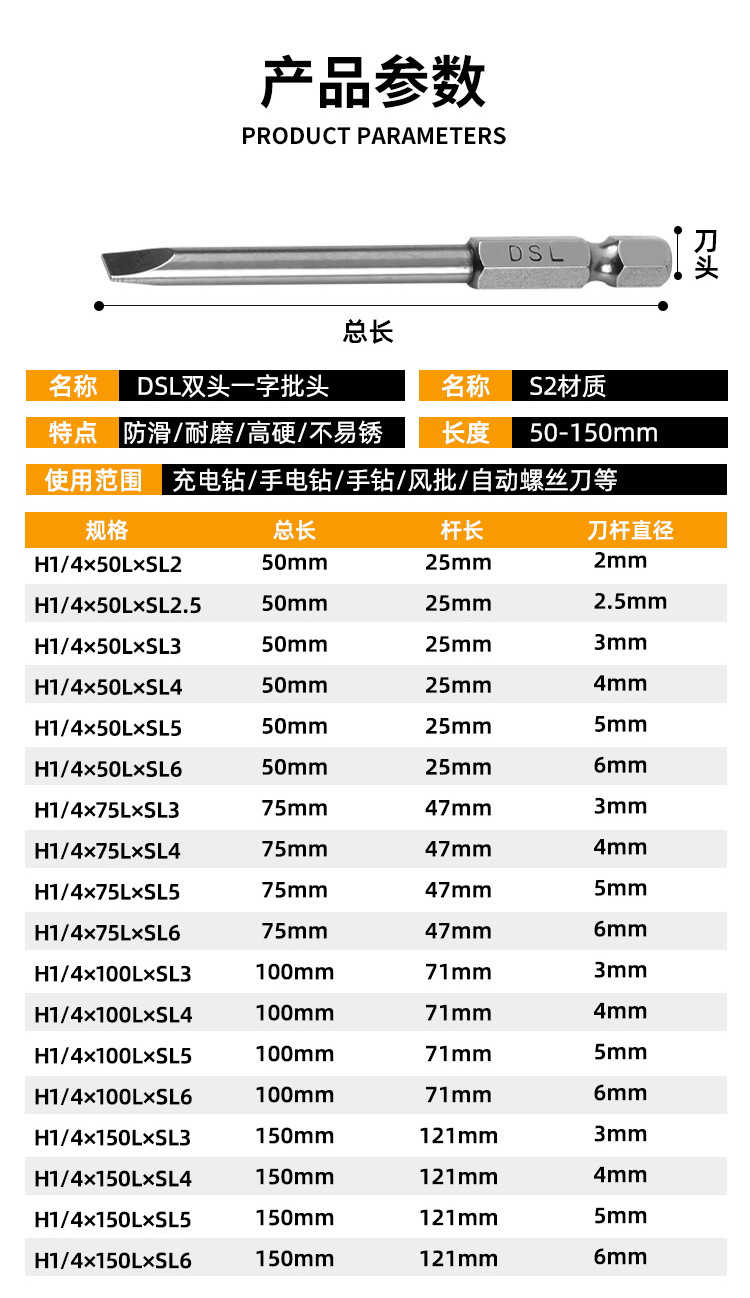• DSLH1/4 × 150L × SL4 (한 단어)