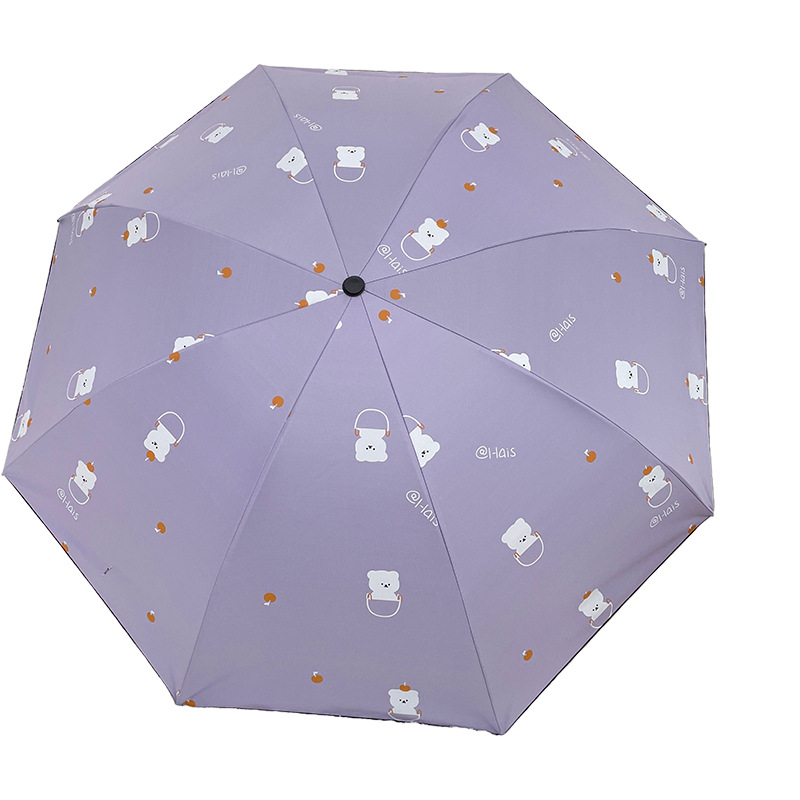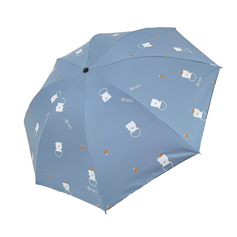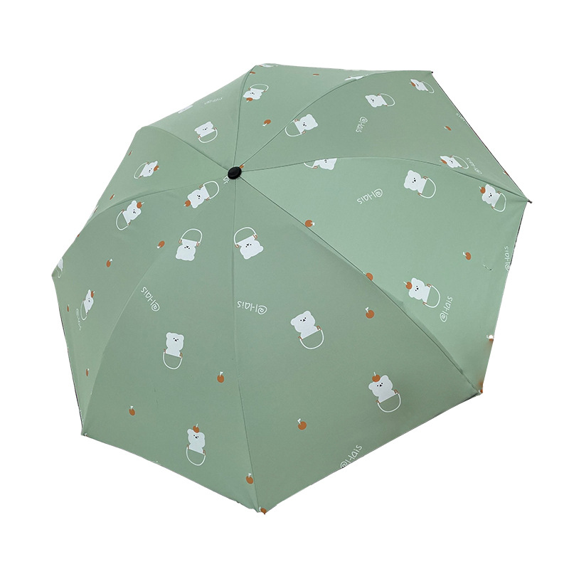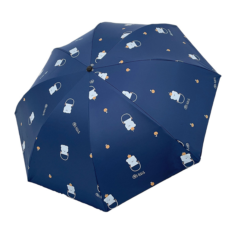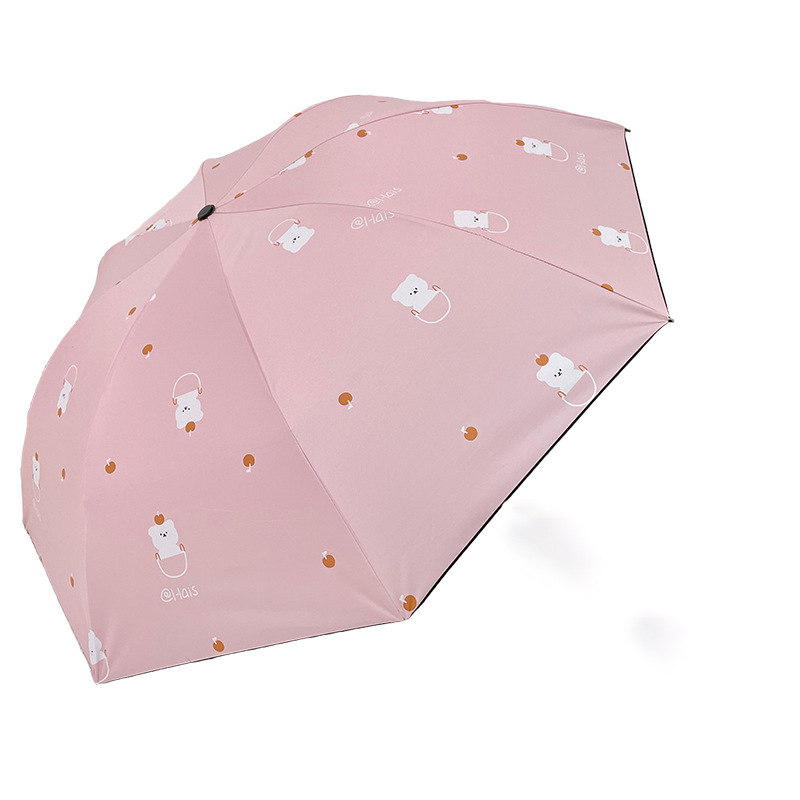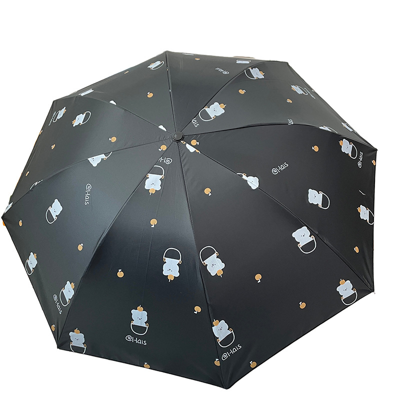 만화 곰 검은 접착제 우산 8 뼈 3 중 자외선 차단제 태양 우산 검은 접착제 자외선 차단 햇빛과 비 이중 사용 접는 우산