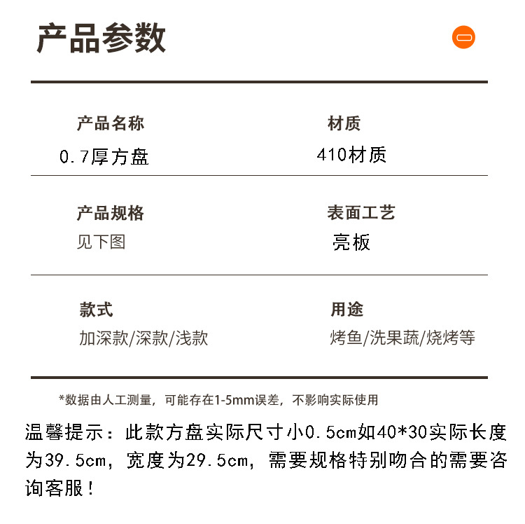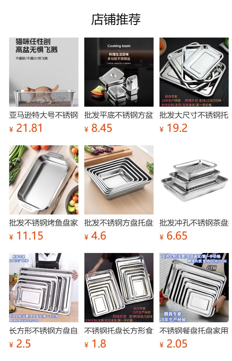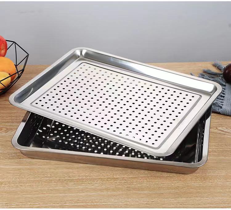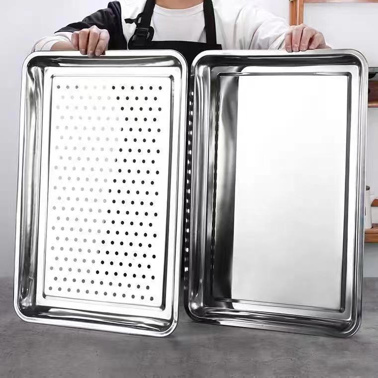 스테인레스 스틸 사각 접시 트레이, 디너 접시, 생선구이 접시, 바베큐 접시, 찜밥 접시, 직사각 접시, 대외 무역 가정용 및 상업용스토어 가기