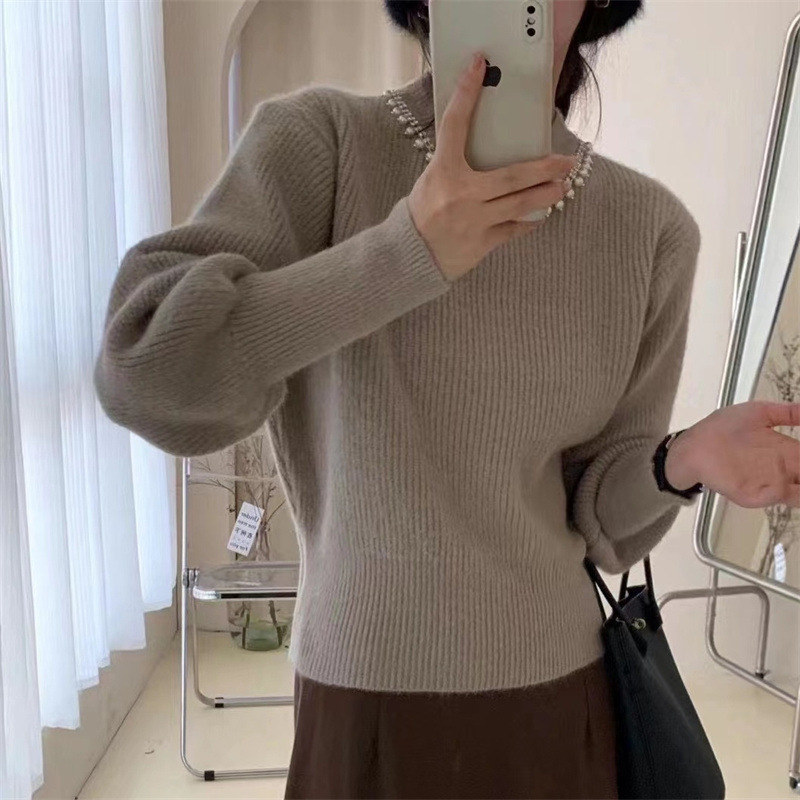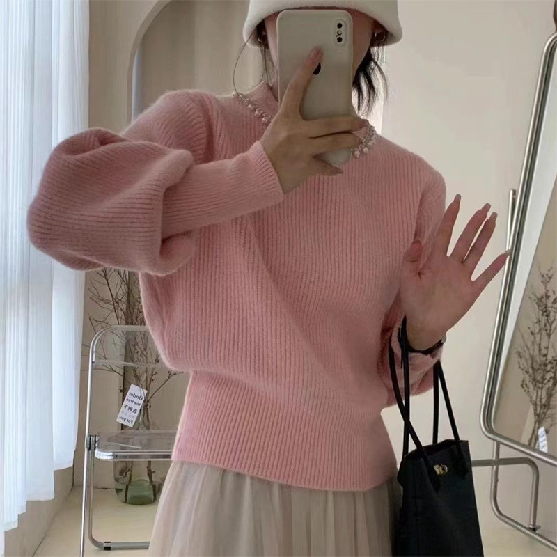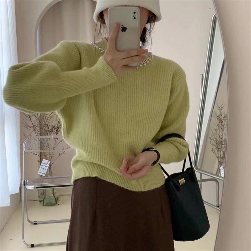라운드 넥 풀오버 페르시 스웨터 2023 가을 새로운 단색 느슨한 두꺼운 스웨터 여성 랜턴 슬리브 기본 셔츠스토어 가기