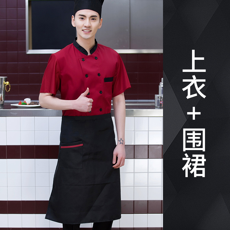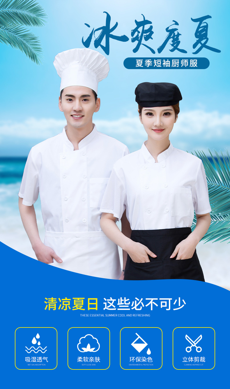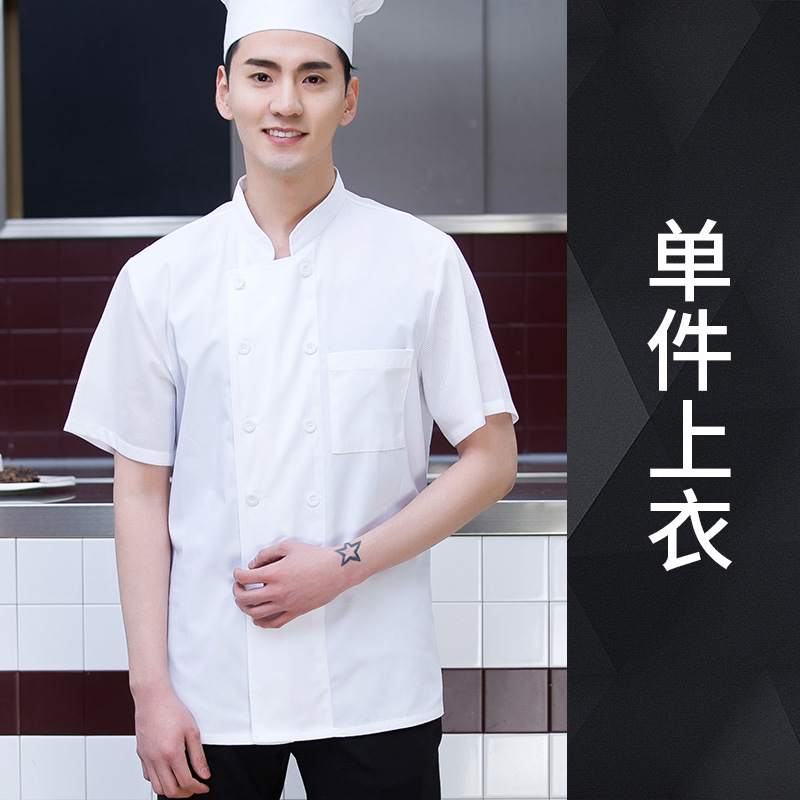 여름 요리사 작업복 반팔 얇은 식당 식당 주방 통기성 그물 요리사 의류 남성 여름 흰색스토어 가기
