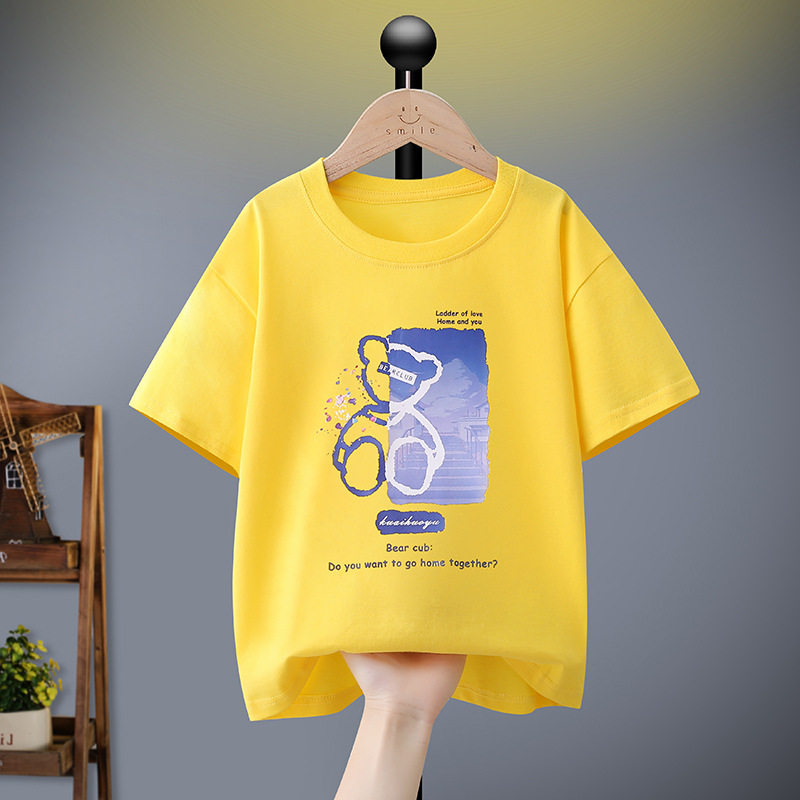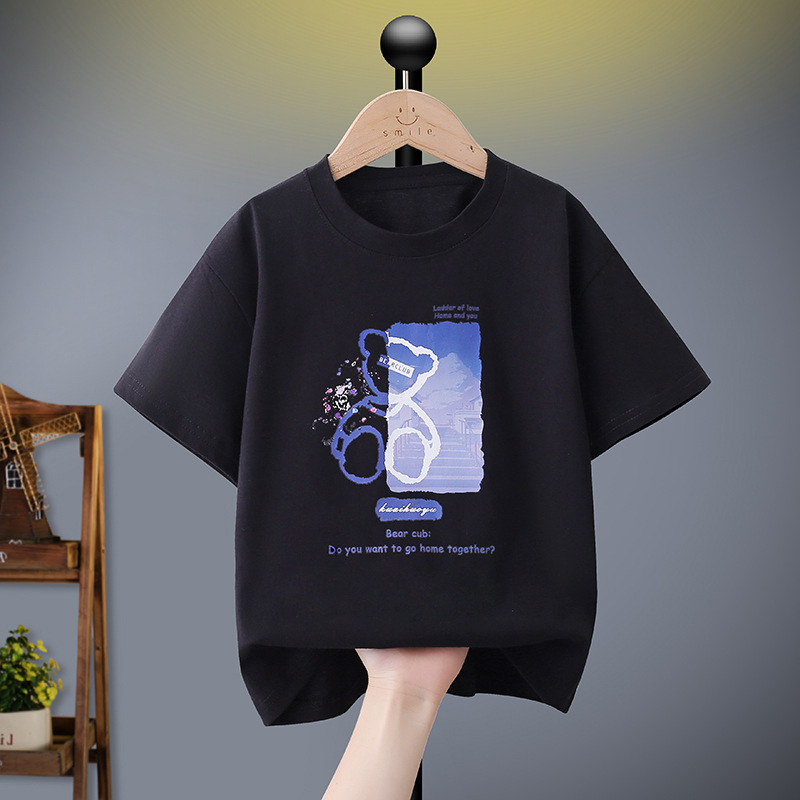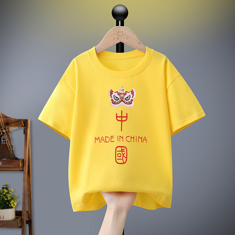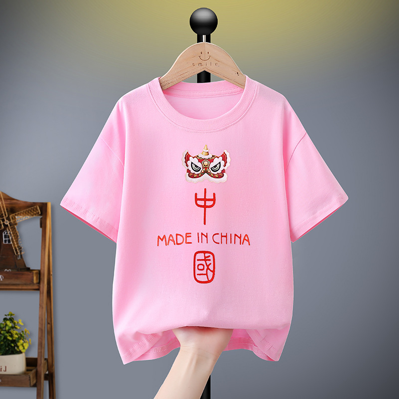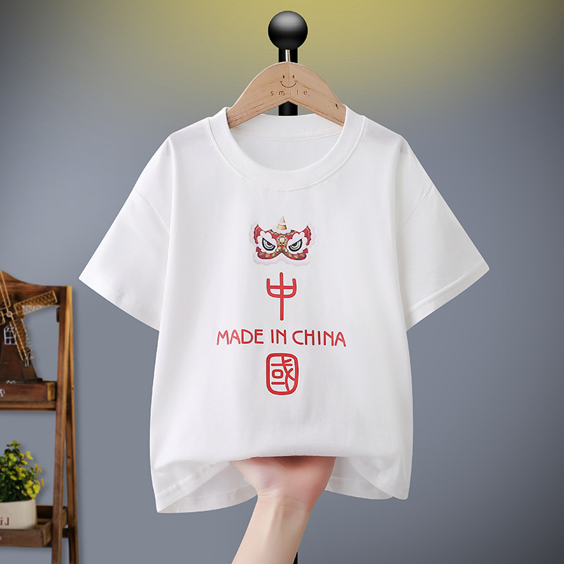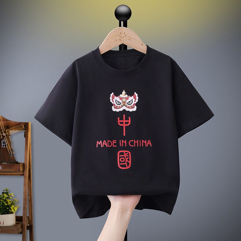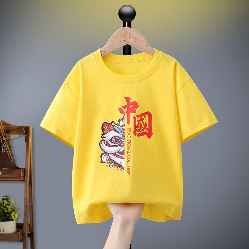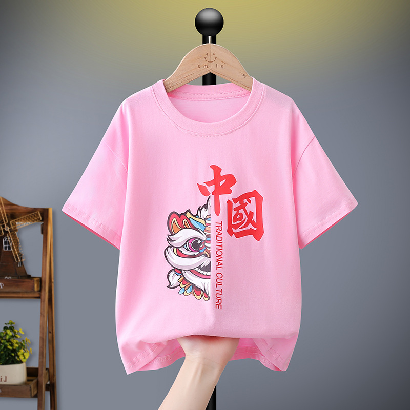 23 여름 얇은 중국식 부모-자식 반팔 중형 어린이 면 유행 유행 느슨한 만화 반팔 티셔츠스토어 가기