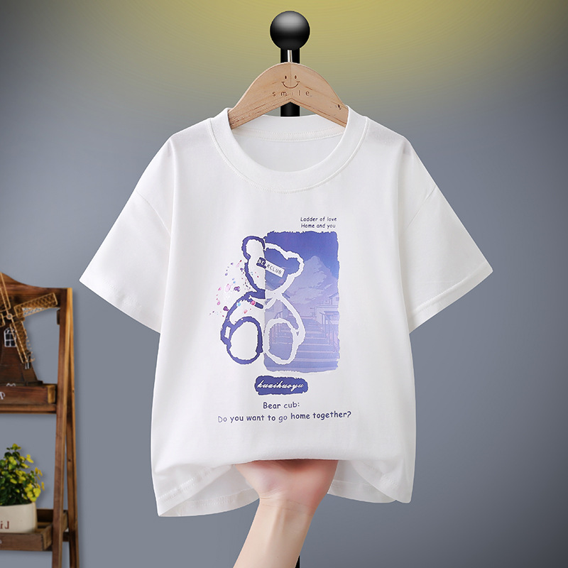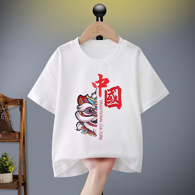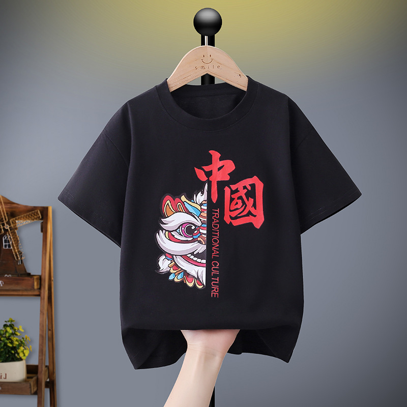 23 여름 얇은 중국식 부모-자식 반팔 중형 어린이 면 유행 유행 느슨한 만화 반팔 티셔츠