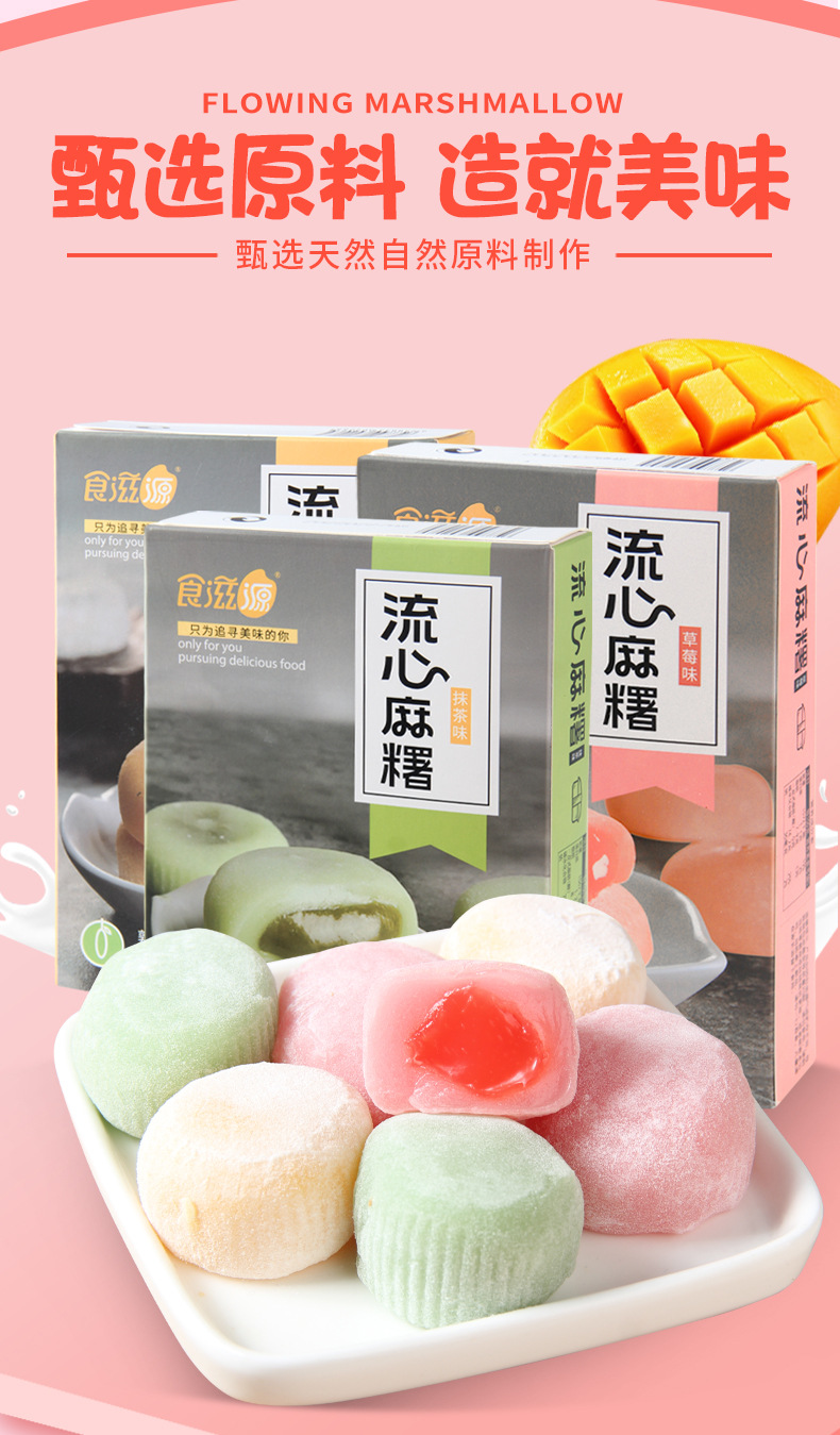음식 소스 흐름 심장 감자 150g 얼음 피부 찹쌀 샌드위치 만두 검은 참깨 말차 맛 스낵 케이크스토어 가기