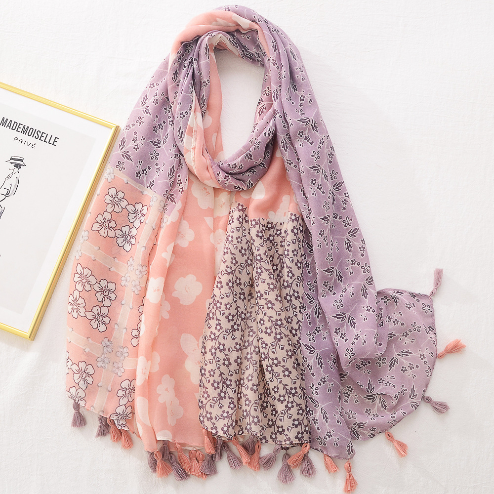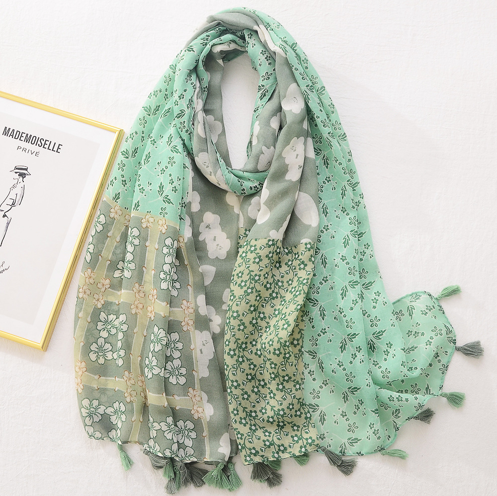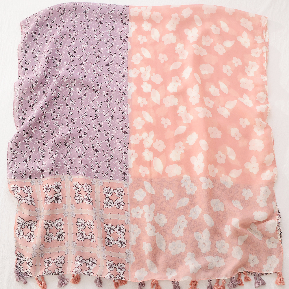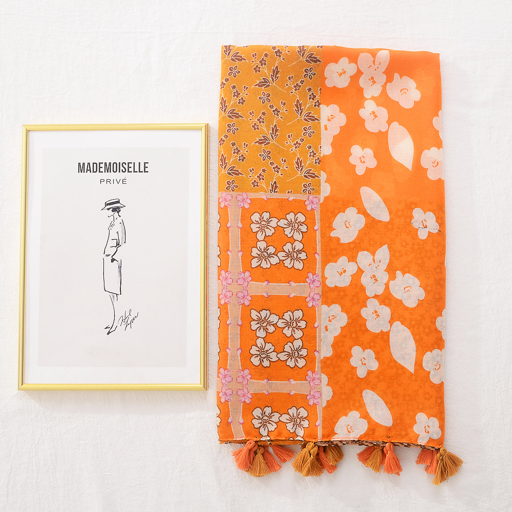 일본의 새로운 예술적 색상 접합 여행 자외선 차단제 비치 타올 인쇄 된 면과 린넨 핸드 실크 스카프 술 스카프 대형 스카프스토어 가기