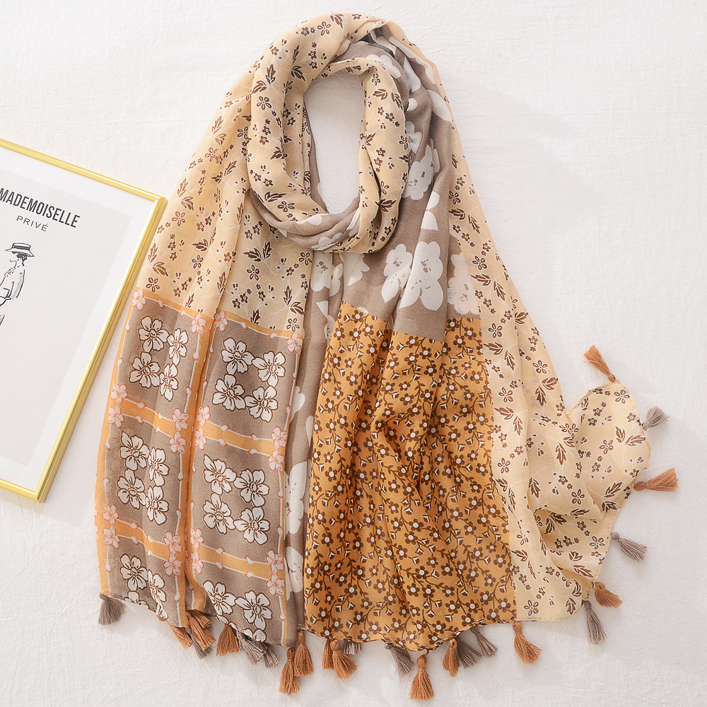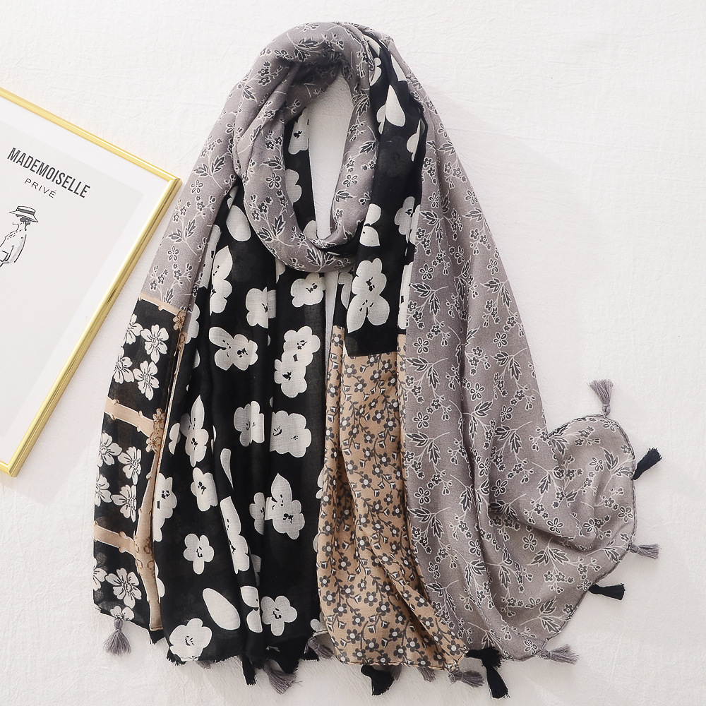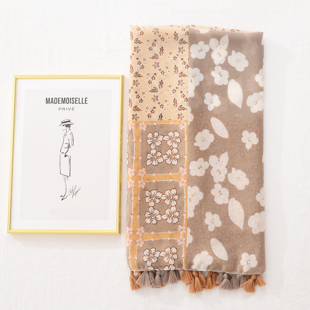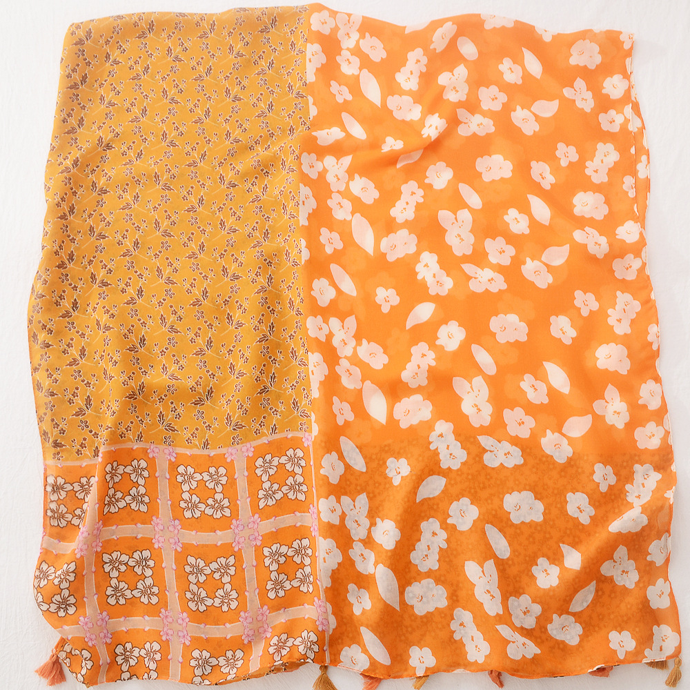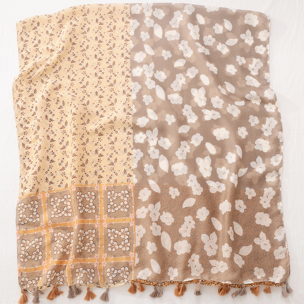 일본의 새로운 예술적 색상 접합 여행 자외선 차단제 비치 타올 인쇄 된 면과 린넨 핸드 실크 스카프 술 스카프 대형 스카프스토어 가기