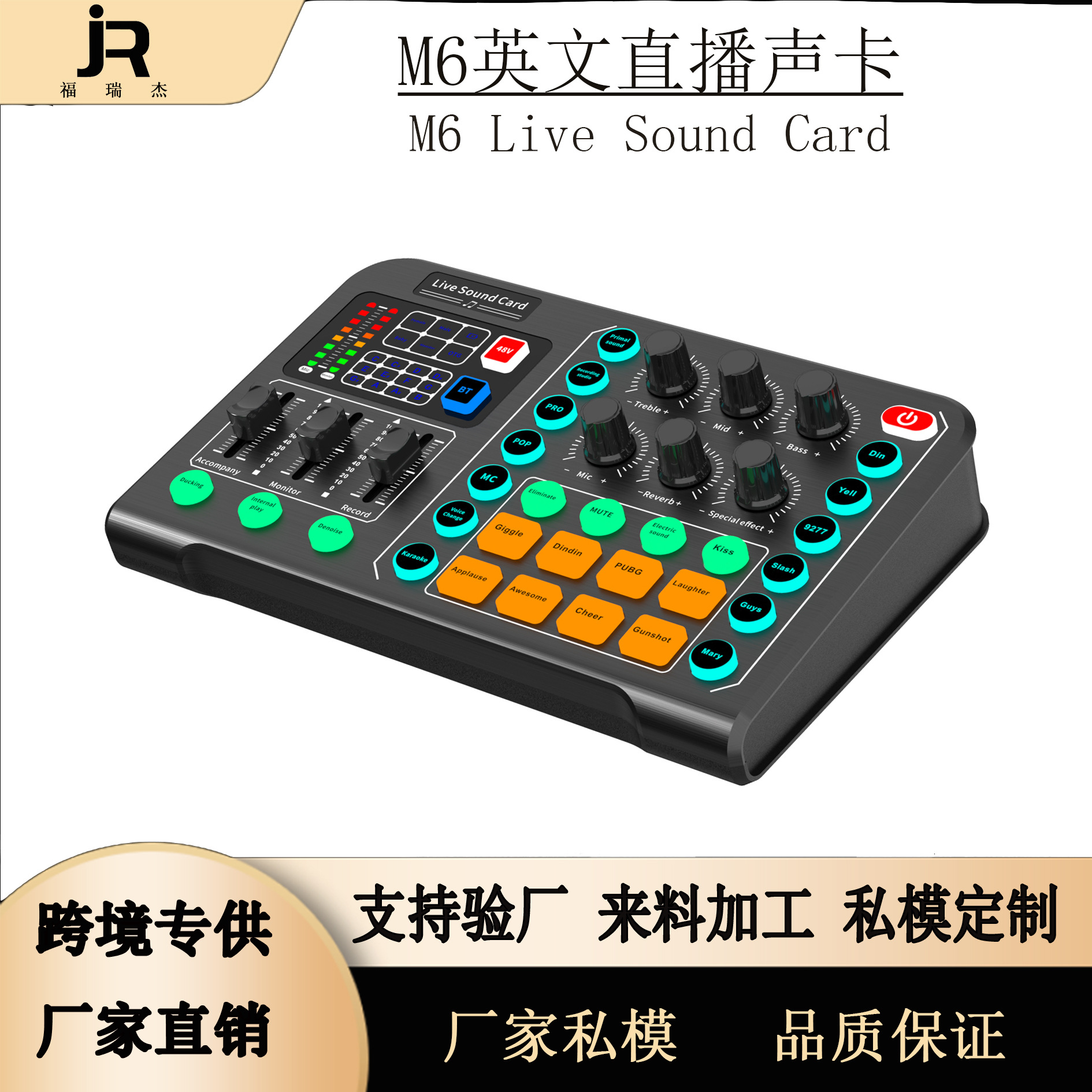 M6 영어 버전 라이브 사운드 카드 48v 대형 다이어프램 마이크 다양한 음향 효과 음성 변조 전용 모니터링 라이브 방송 전용