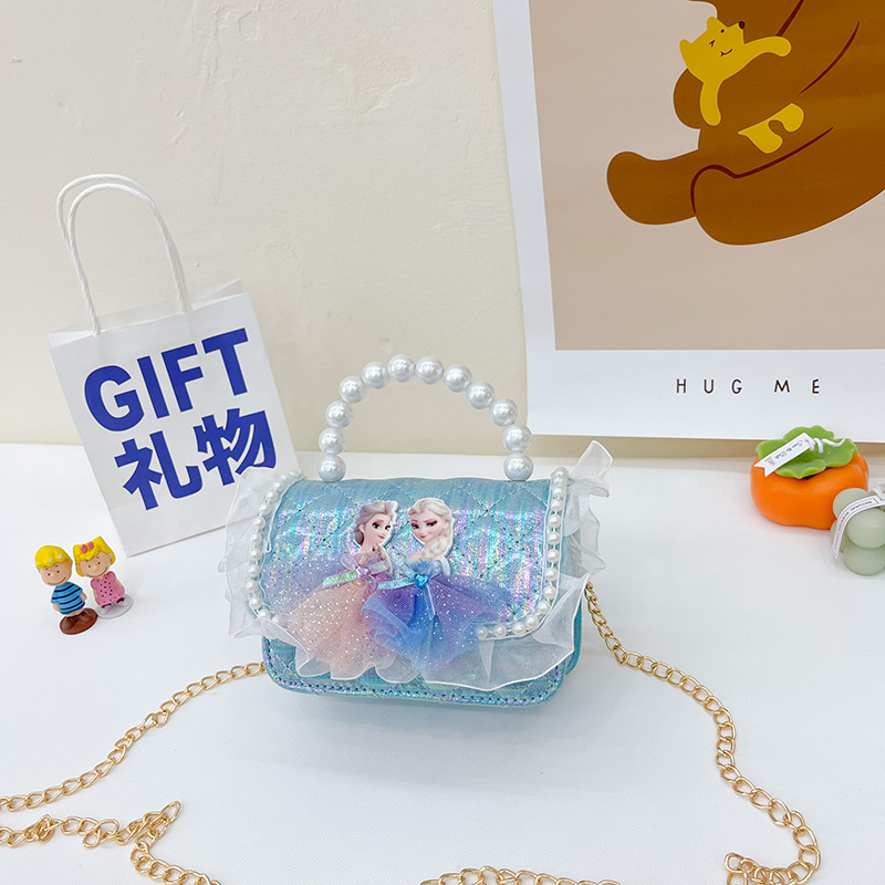 한국 스타일 어린이 진주 핸드백 인스 패션 여자아이 가방 만화 트렌드 체인 미니백 체인백