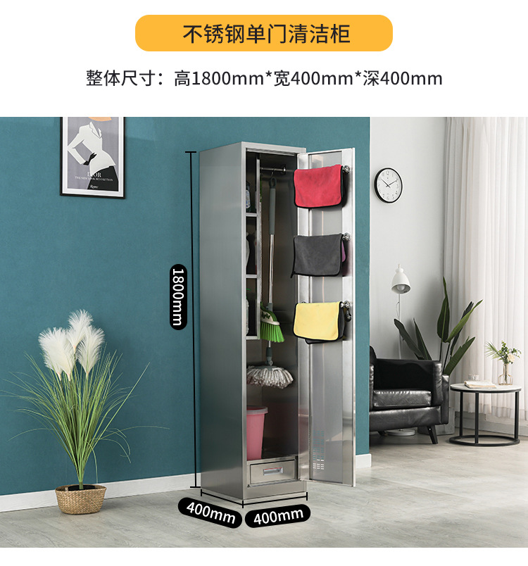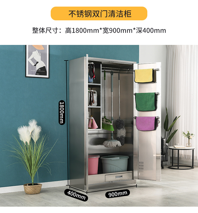 304 스테인리스 청소 캐비닛, 걸레 및 빗자루 보관함, 학교 및 회사용 이중문 보관함스토어 가기