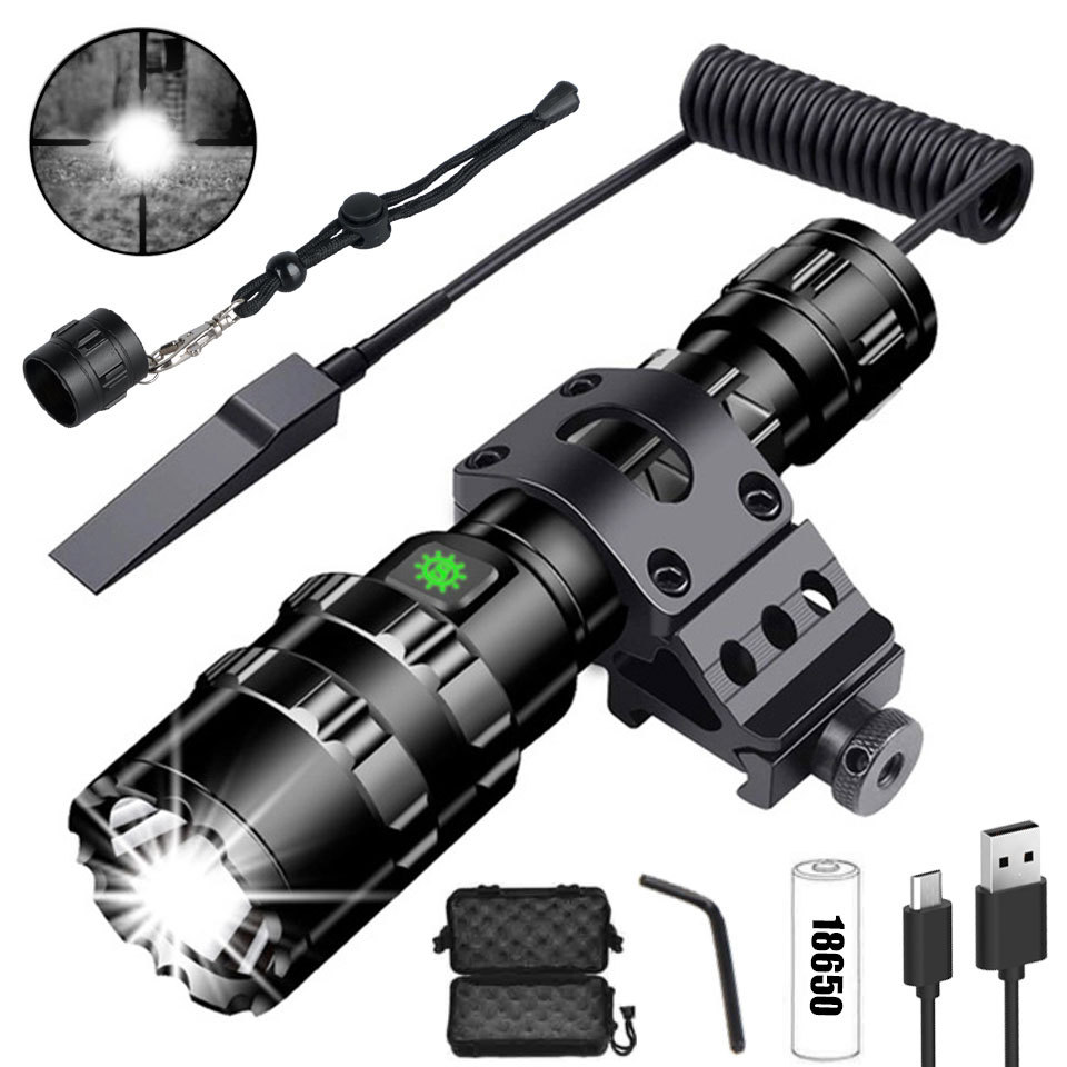 국경 간 새로운 USB 충전식 전술 손전등 L2 야외 방수 장거리 야외 검색 강력한 손전등 LED