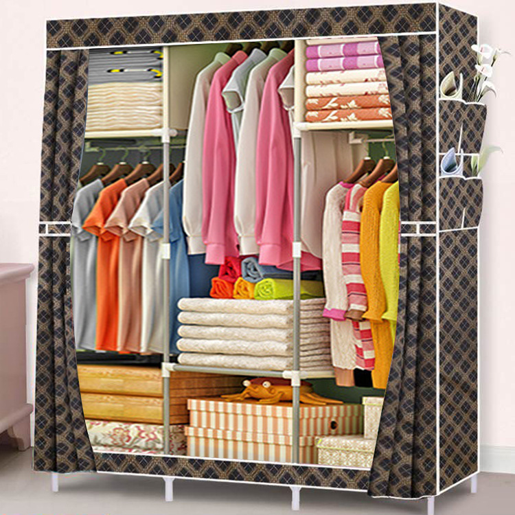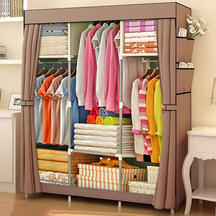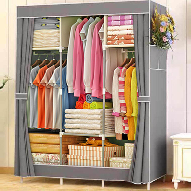 간단한 옷장 부직포 보관 옷장 간단한 옷장 걸이 맞춤형 스틸 프레임 접이식 경제적 인 옷장스토어 가기