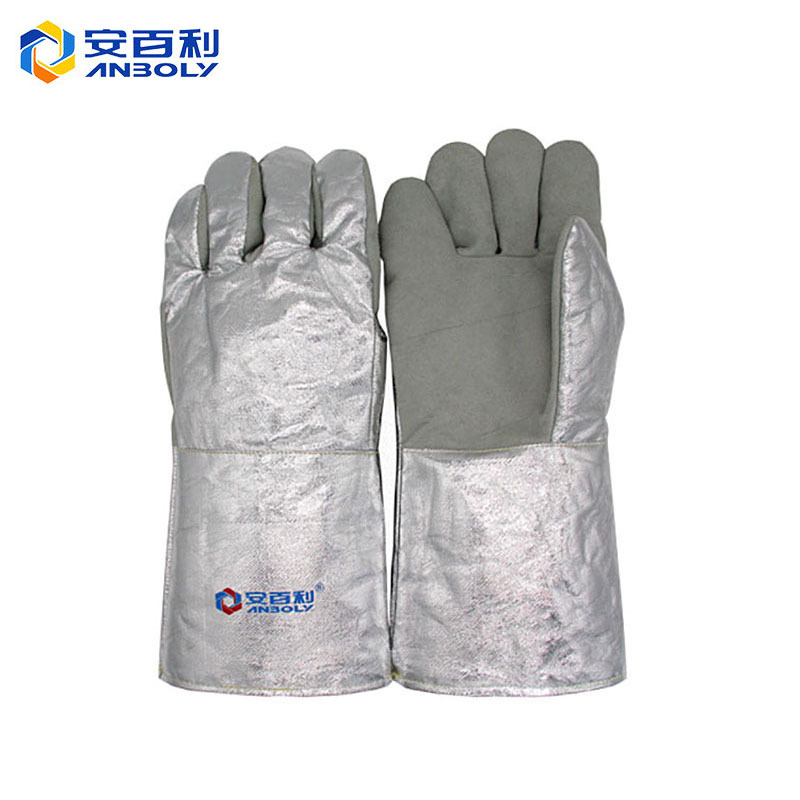 앰버 ABL-S58 단열 고온 300 도 소가죽 알루미늄 호일 전기 용접 산업용 스케일 방지 야금 내마모성 장갑