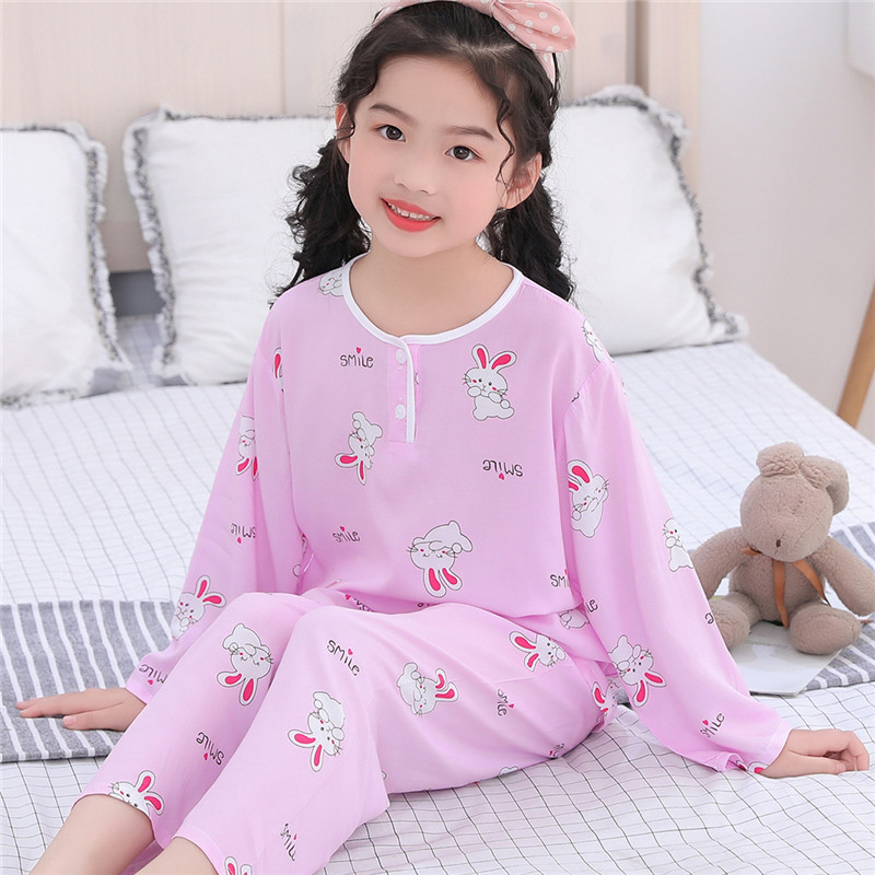 어린이 면 실크 잠옷 세트 2022 여름 얇은 면 실크 만화 가정 에어컨 의류 소년과 소녀 잠옷 도매