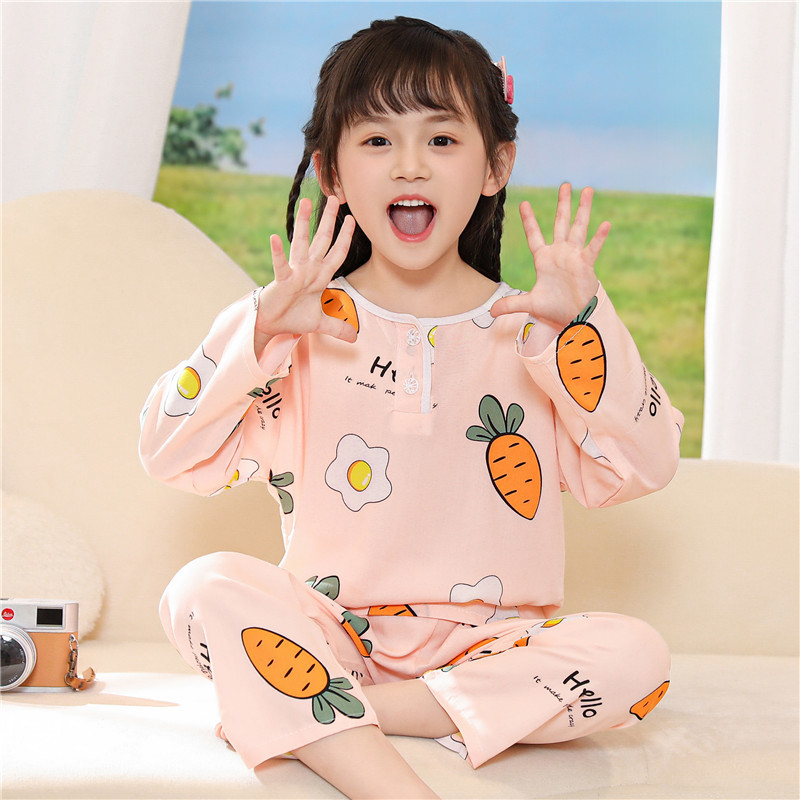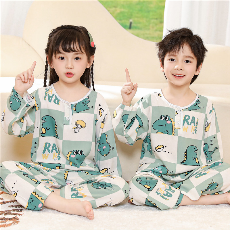 어린이 면 실크 잠옷 세트 2022 여름 얇은 면 실크 만화 가정 에어컨 의류 소년과 소녀 잠옷 도매스토어 가기