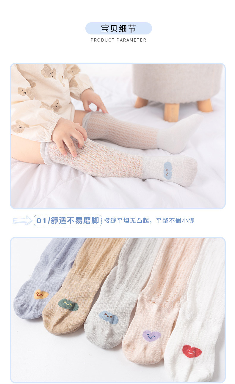 여름 초박형 아기 스타킹 면 미끄럼 방지 분배 안티 페달 아기 무릎 모기 방지 양말 여자 양말