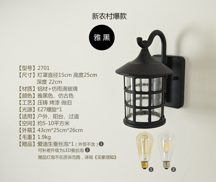 야외 벽 램프 야외 방수 안뜰 문 램프 정원 벽 미국 빌라 테라스 LED 램프 발코니 벽 램프