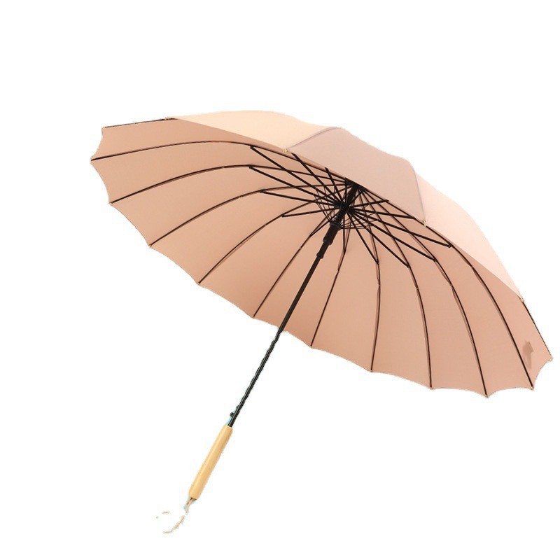 16 뼈 작은 신선한 긴 손잡이 직선 우산 대형 곡선 핸들 바람 방지 광고 양산 우산 사용자 정의 로고