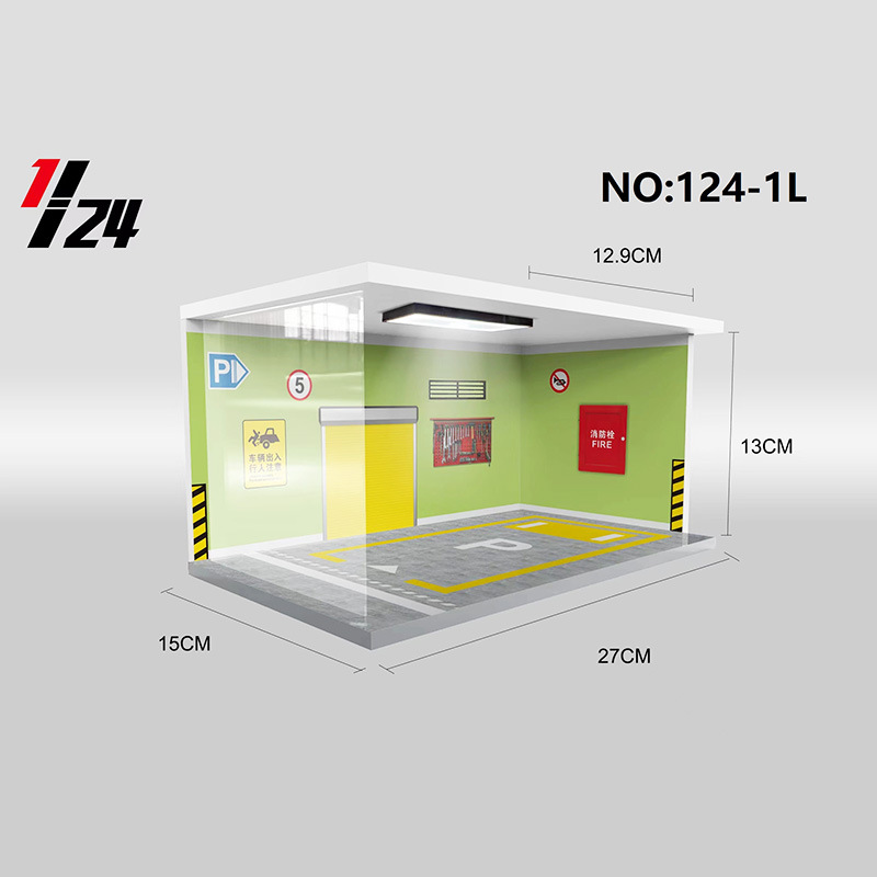 1:24 주차장 모형 시뮬레이션 미니어처 장면 주차고 PVC 조립형 조명 포함 주차 공간 자동차 모형 디스플레이 스탠드스토어 가기