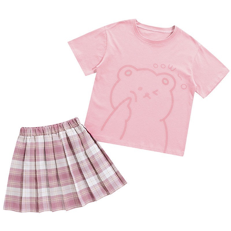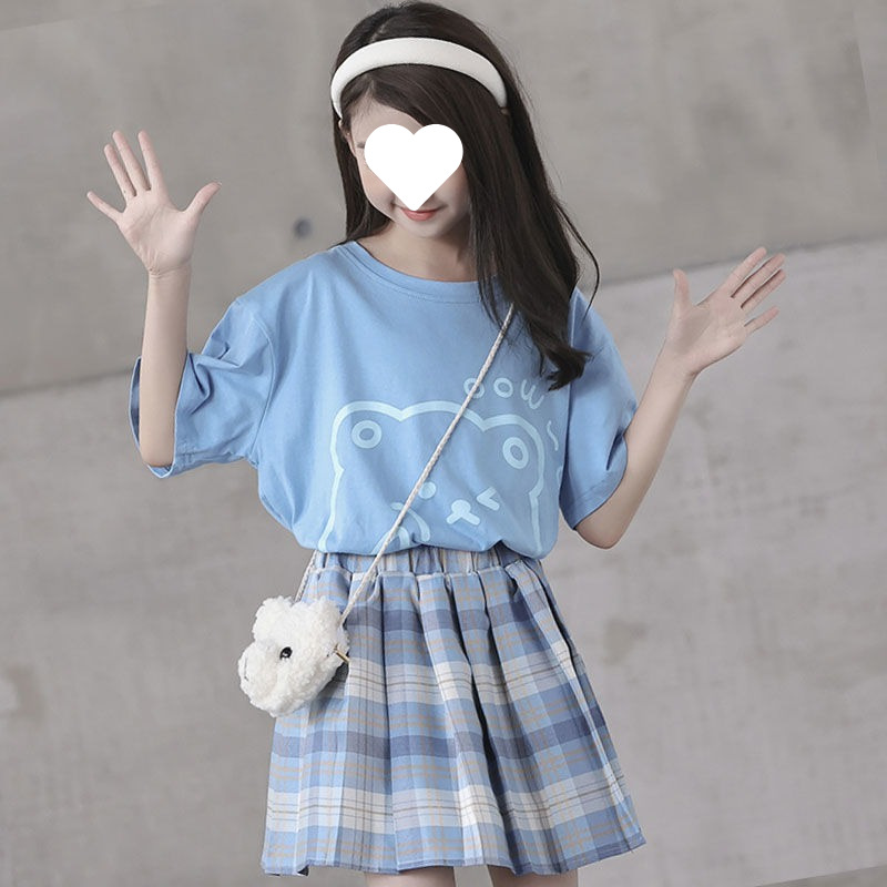 여아 플리츠 스커트 정장 하의 2025 새로운 스타일의 패셔너블한 여아 반팔 짧은 스커트 투피스 세트스토어 가기
