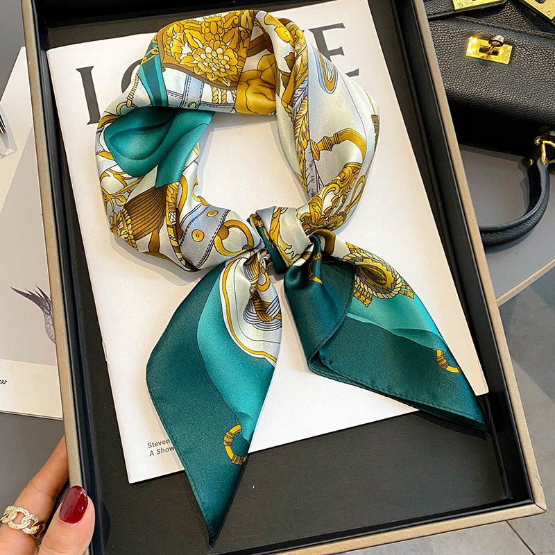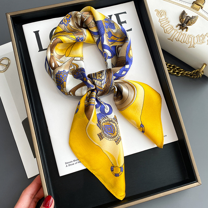 항저우 실크 뽕나무 실크 스카프 북유럽 심플 프린트 실크 여성 70cm 스퀘어 스카프 공급스토어 가기