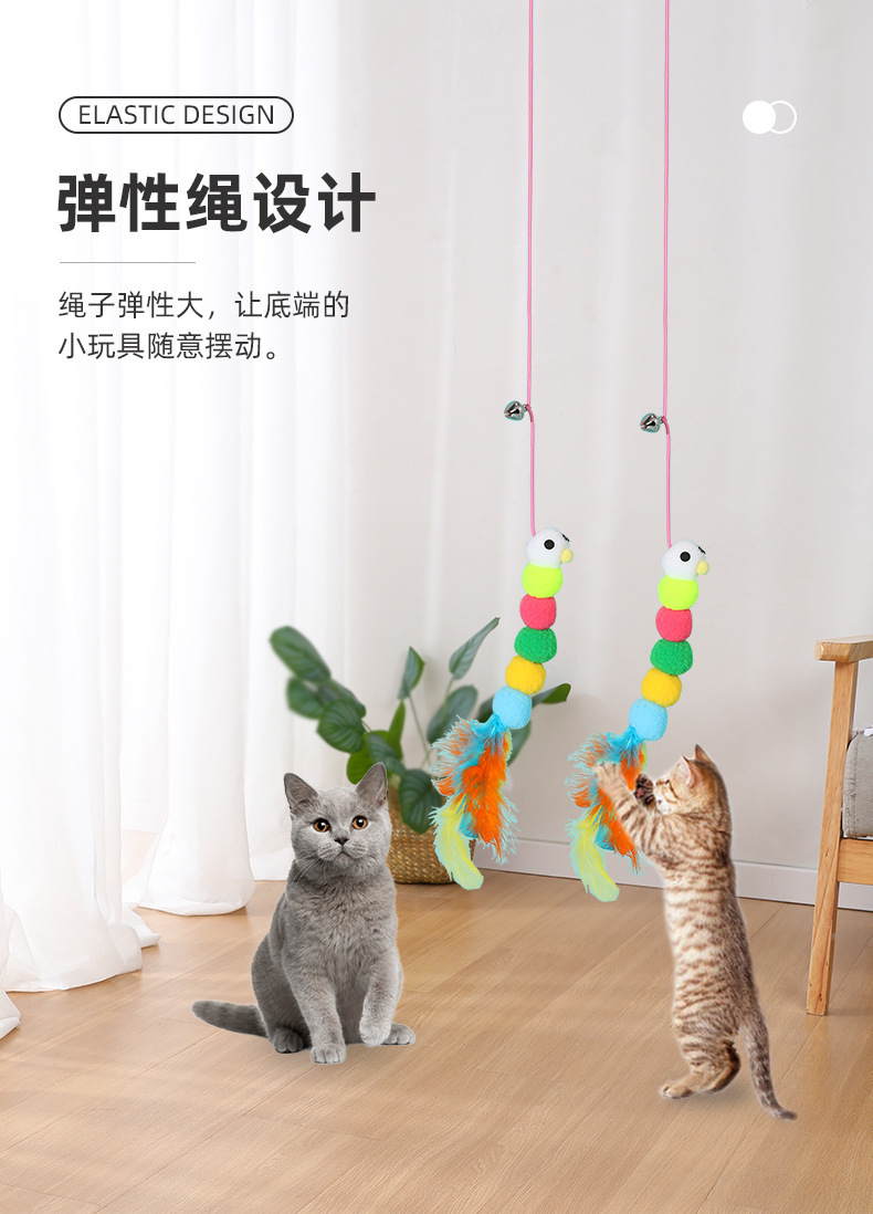 그물 레드 스윙 탄성 교수형 문 봉제 고양이 로프 셀프 안녕 고양이 장난감 애벌레 탄성 고양이 장난감 도매