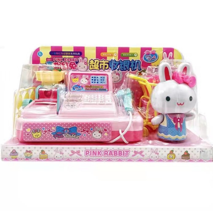 한 단어 핑크 토끼 놀이 집 장난감 시리즈 공주 냉장고 세트 주방 세탁기 금전 등록 소녀 선물스토어 가기