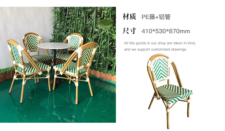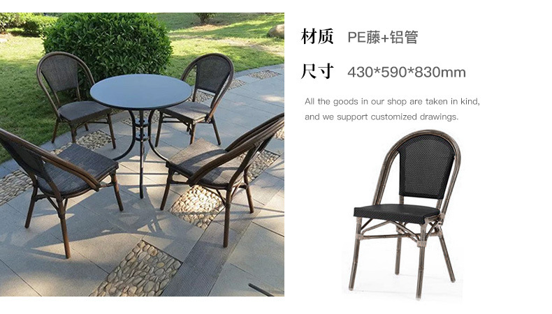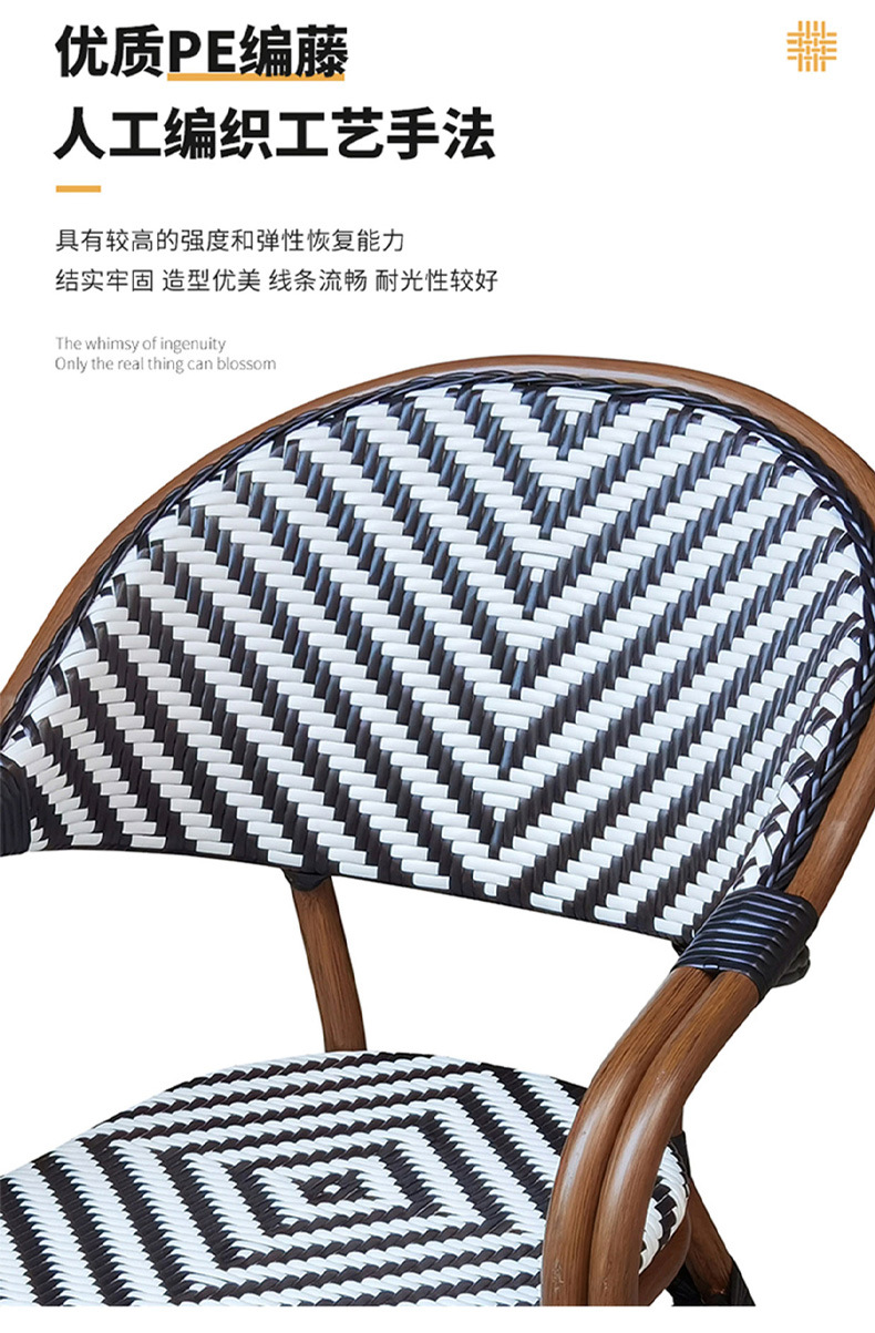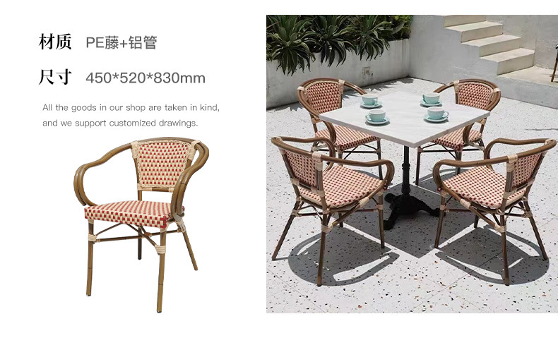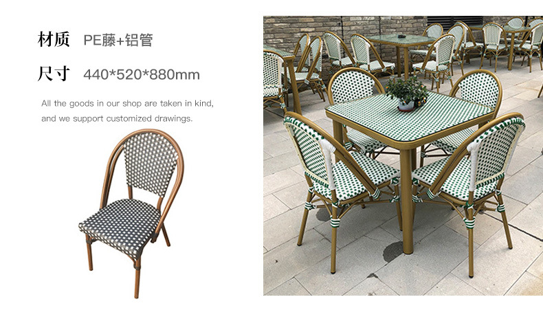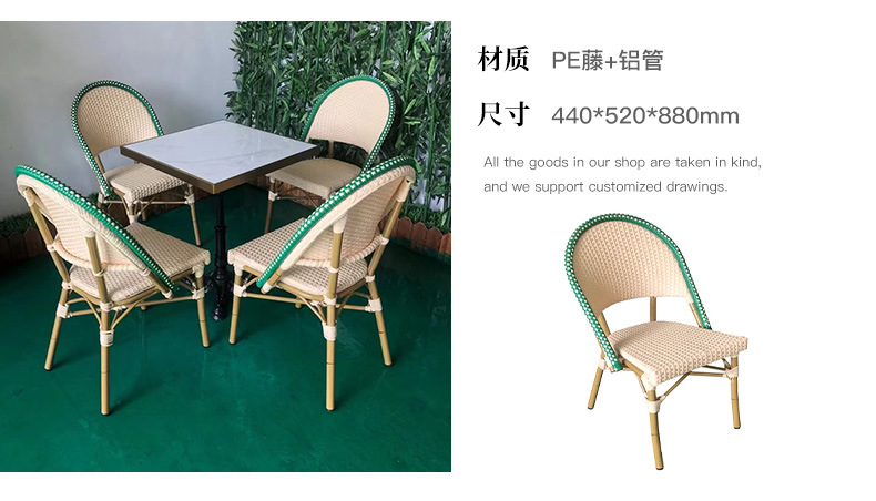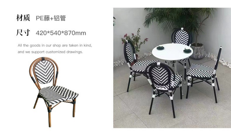 야외 등나무 의자 프랑스 테이블과 의자 알루미늄 합금 등나무 디저트 밀크티 숍 야외 커피 서양 레스토랑 대리석 테이블스토어 가기