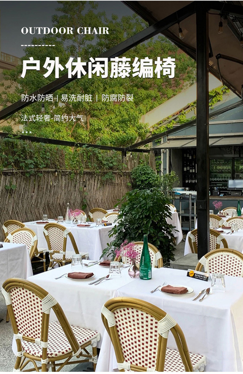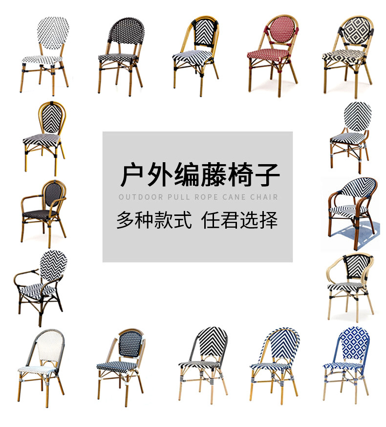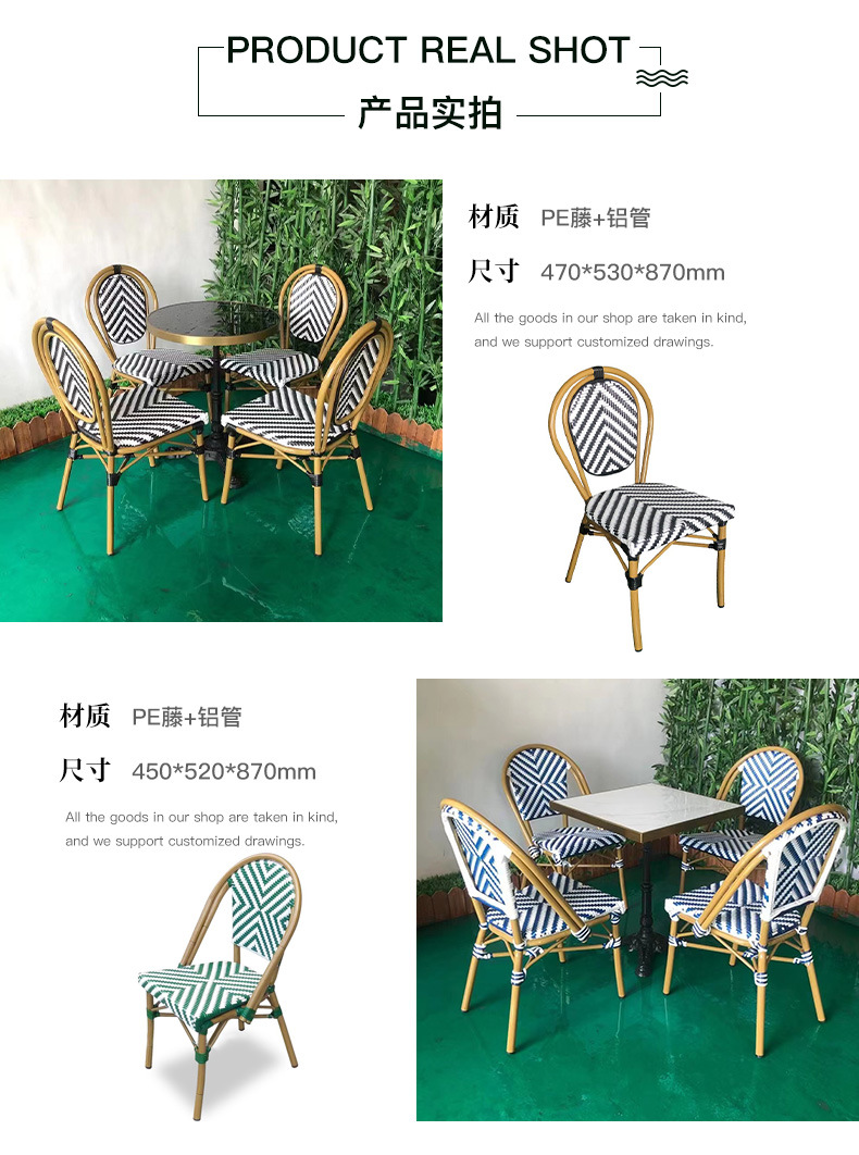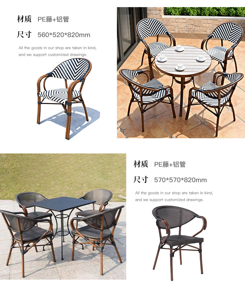야외 등나무 의자 프랑스 테이블과 의자 알루미늄 합금 등나무 디저트 밀크티 숍 야외 커피 서양 레스토랑 대리석 테이블스토어 가기