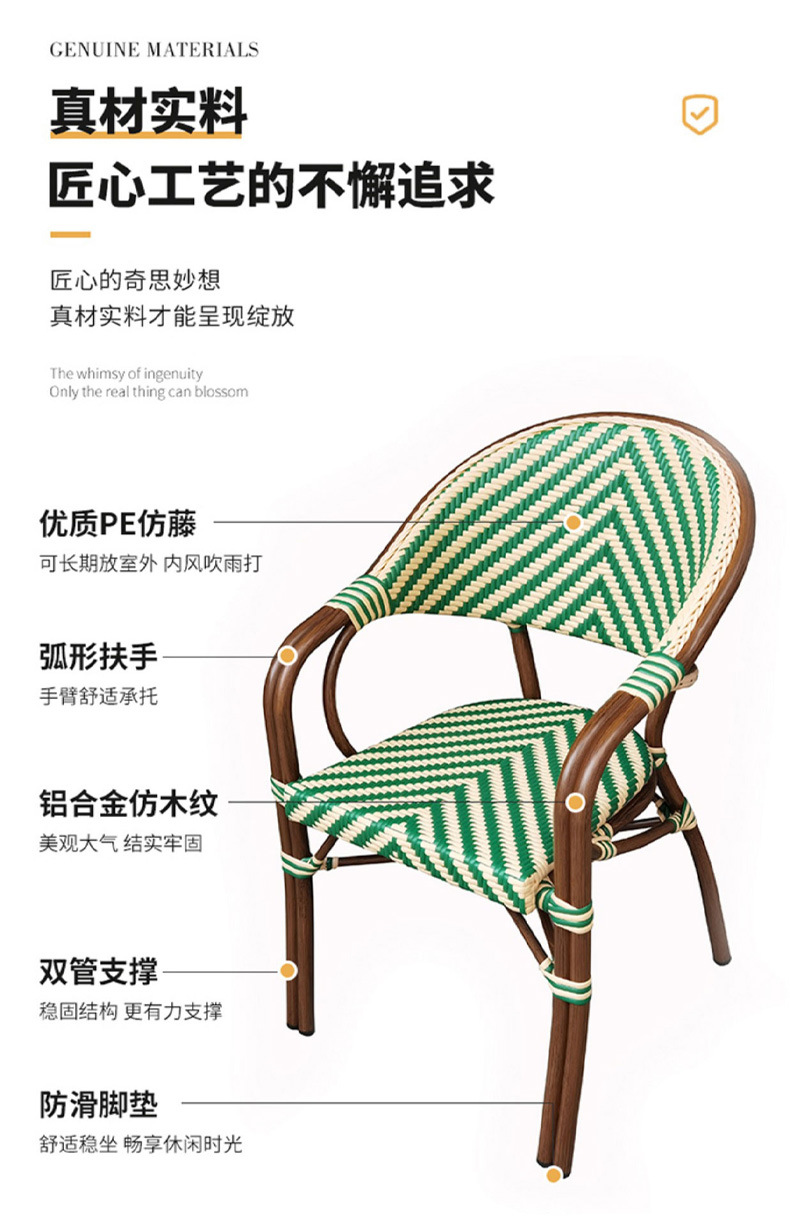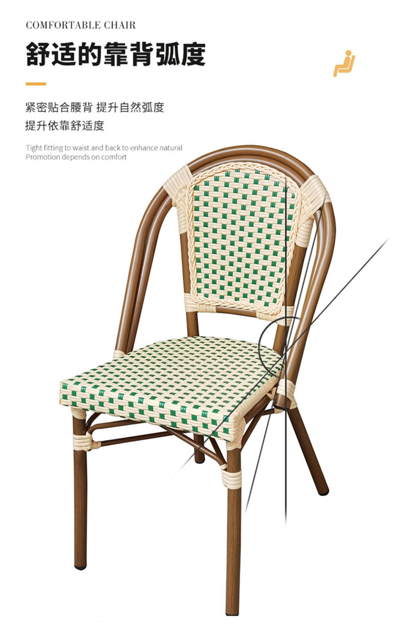야외 등나무 의자 프랑스 테이블과 의자 알루미늄 합금 등나무 디저트 밀크티 숍 야외 커피 서양 레스토랑 대리석 테이블