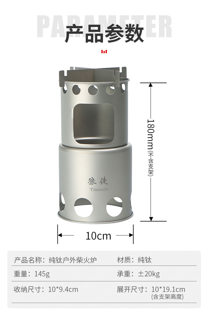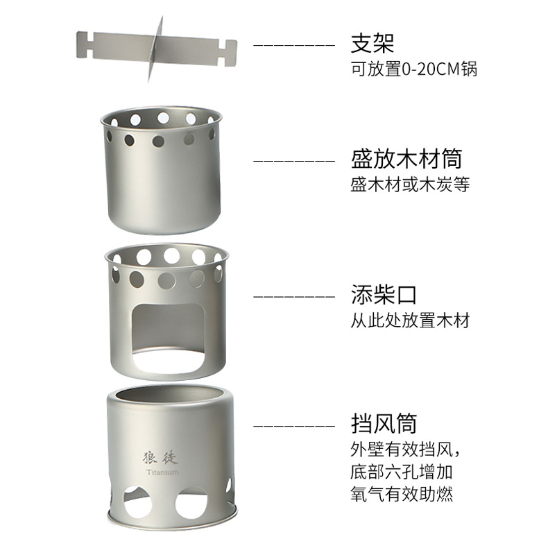 야외 순수 티타늄 145g 장작 스토브 휴대용 간단한 휴대용 스토브 캠핑 야생 분할 요리 장작 난로스토어 가기