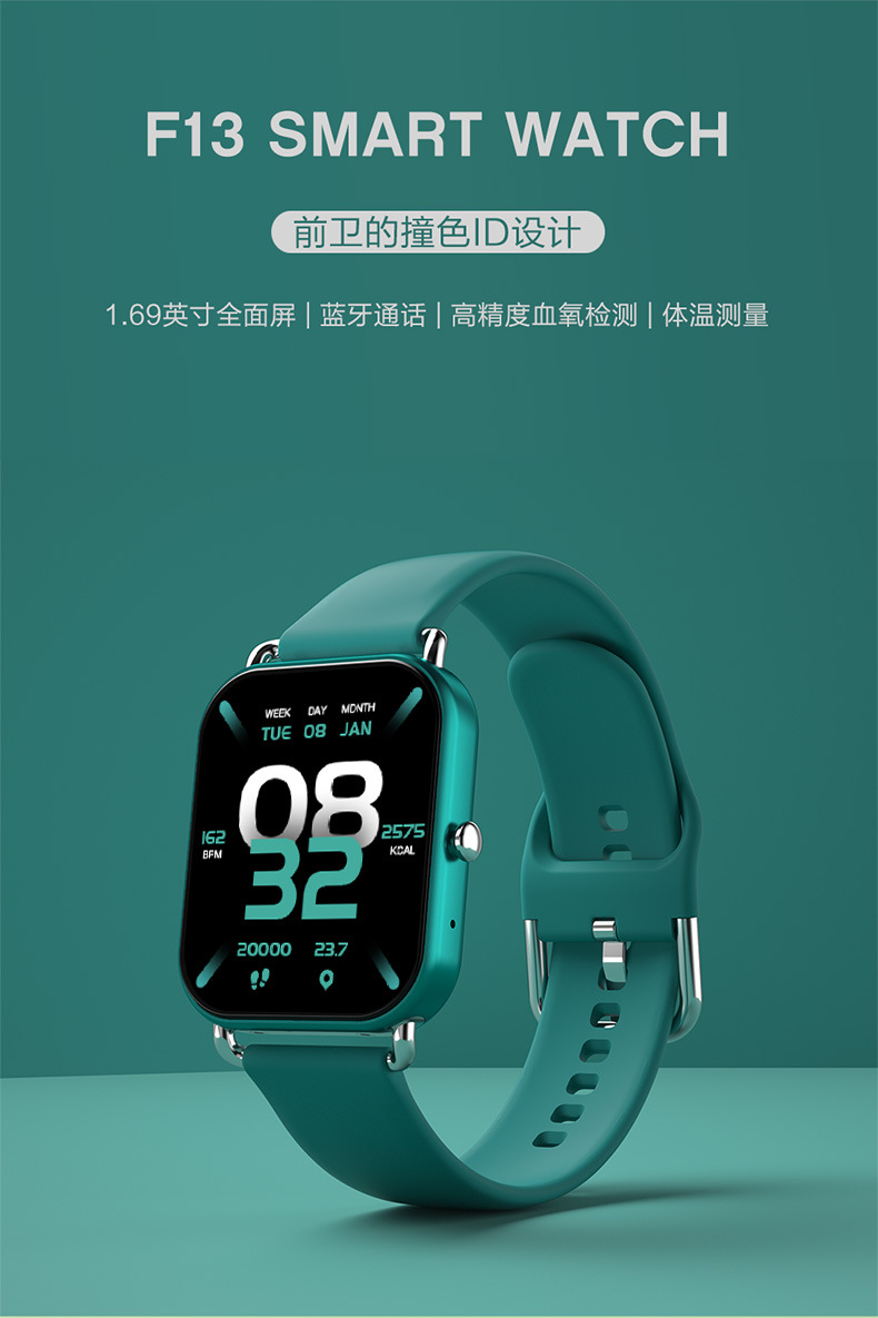 F13S 스마트 워치 블루투스 통화 체온 측정 고정밀도 혈액 산소 검출 멀티 다이얼 정보 푸시
