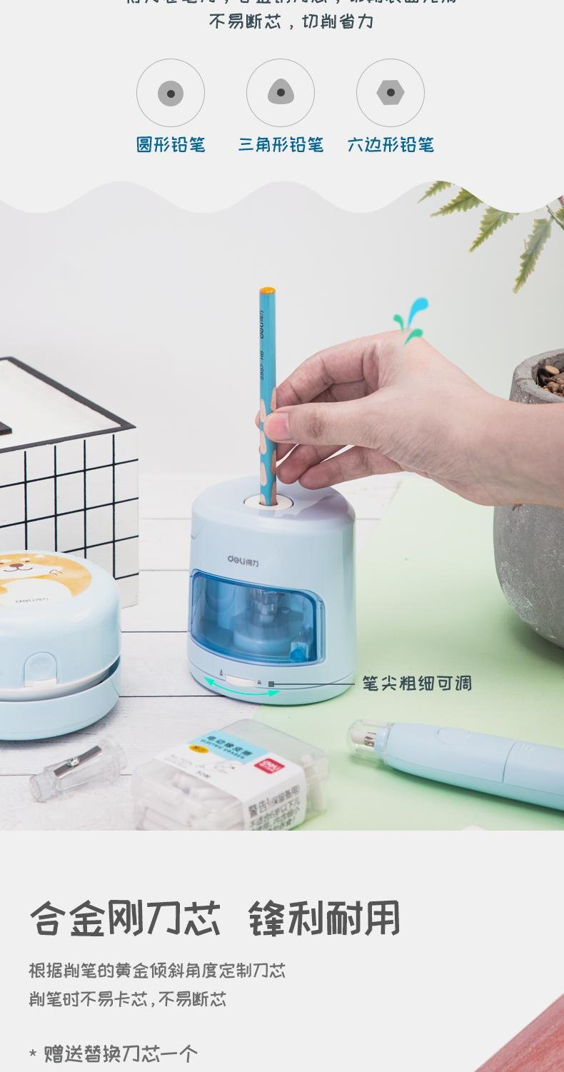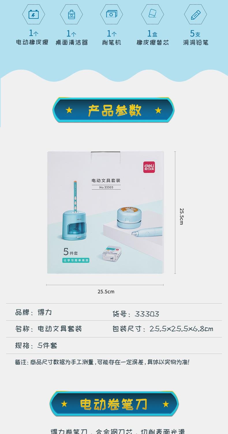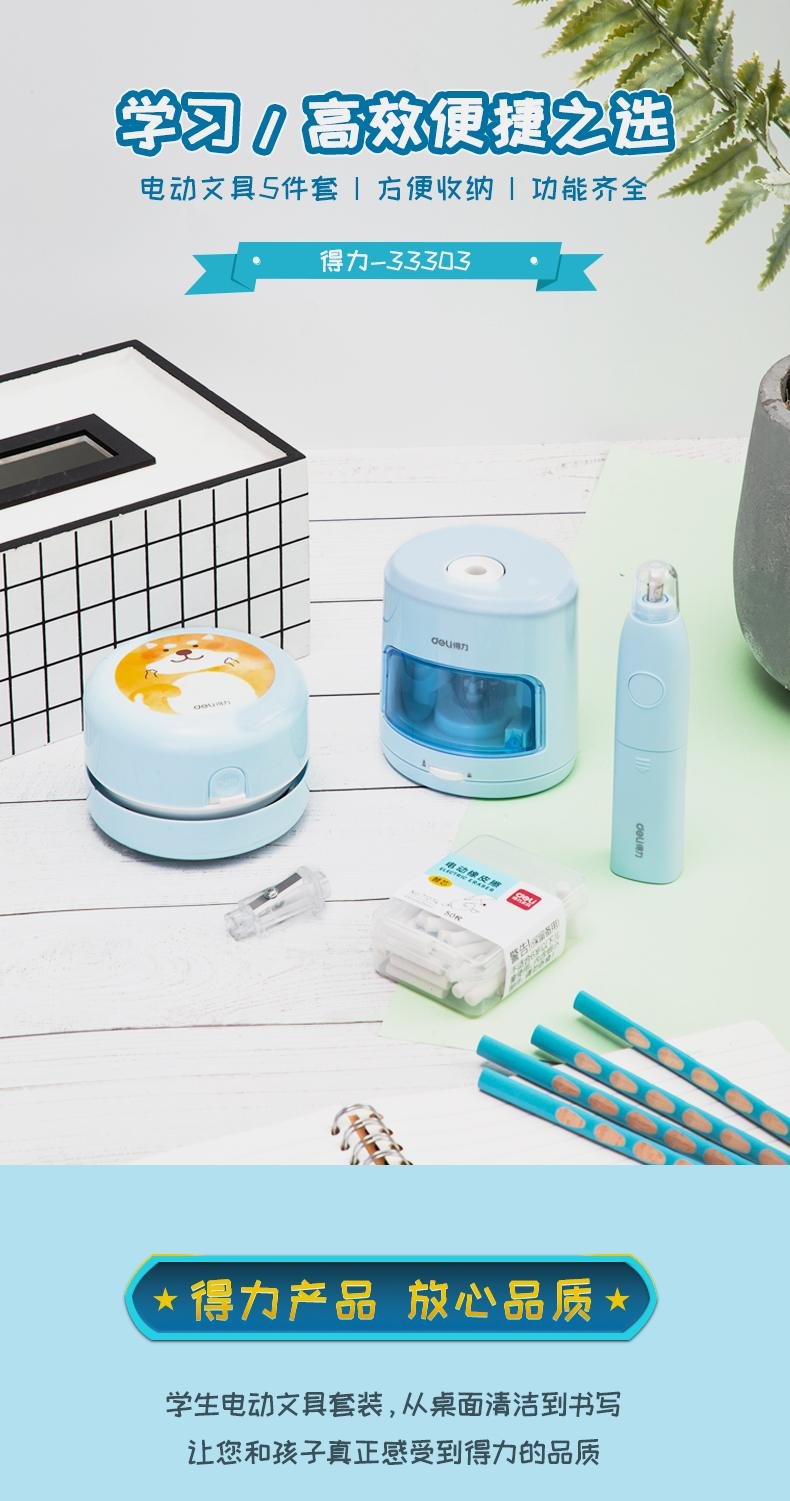델리 33303A 5 피스 학생 전기 문구 선물 상자 세트 탁상용 청소기 지우개 연필 깎이스토어 가기