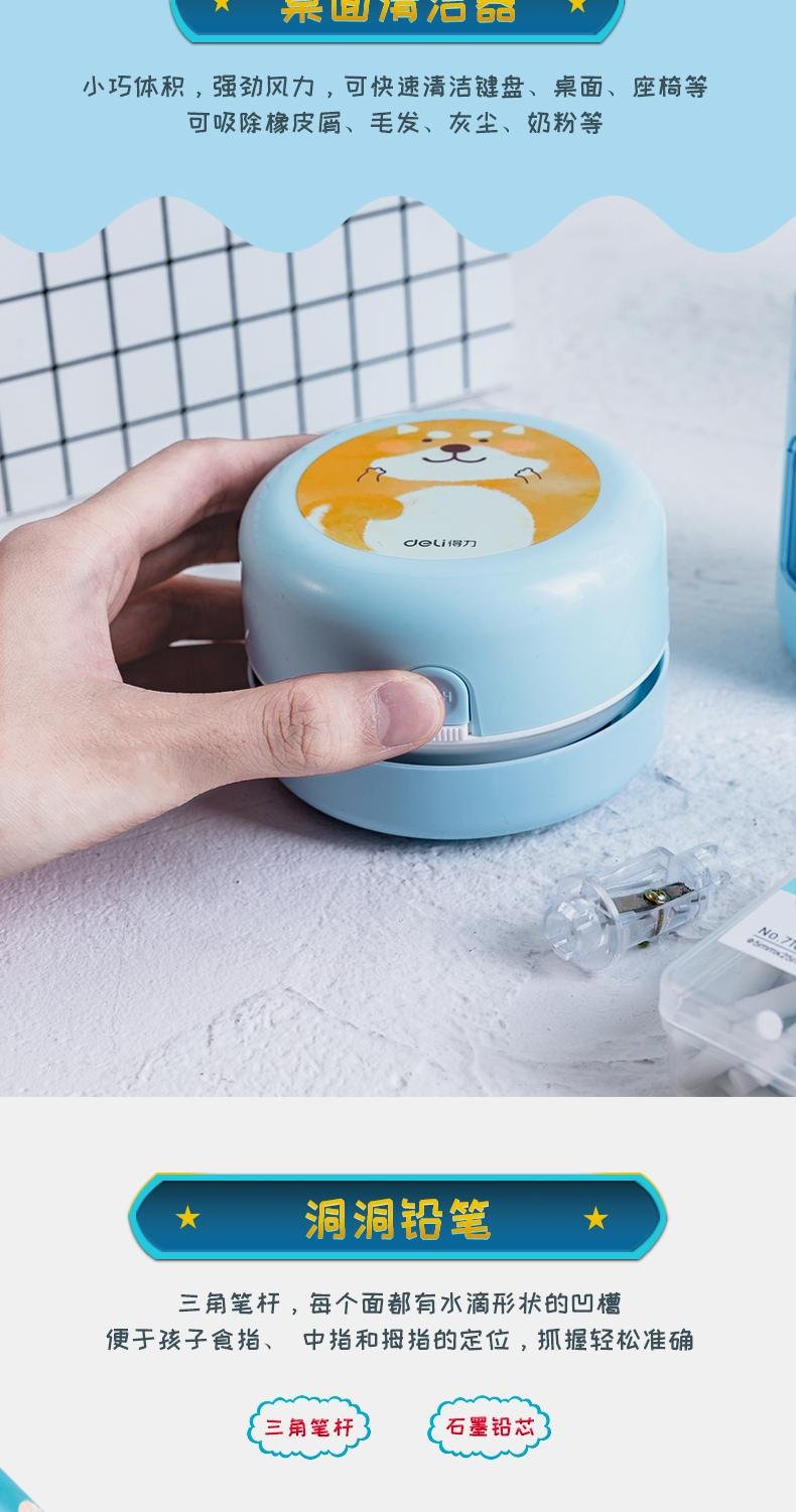 델리 33303A 5 피스 학생 전기 문구 선물 상자 세트 탁상용 청소기 지우개 연필 깎이