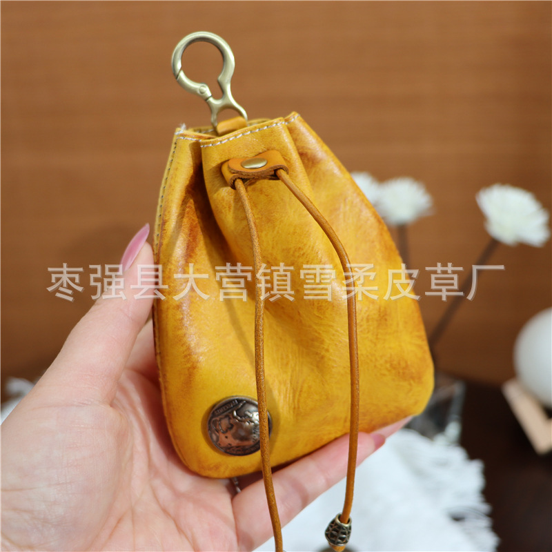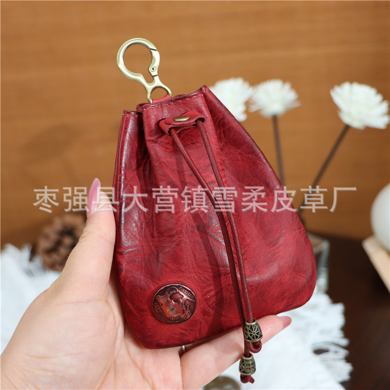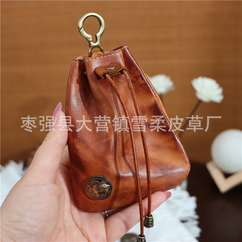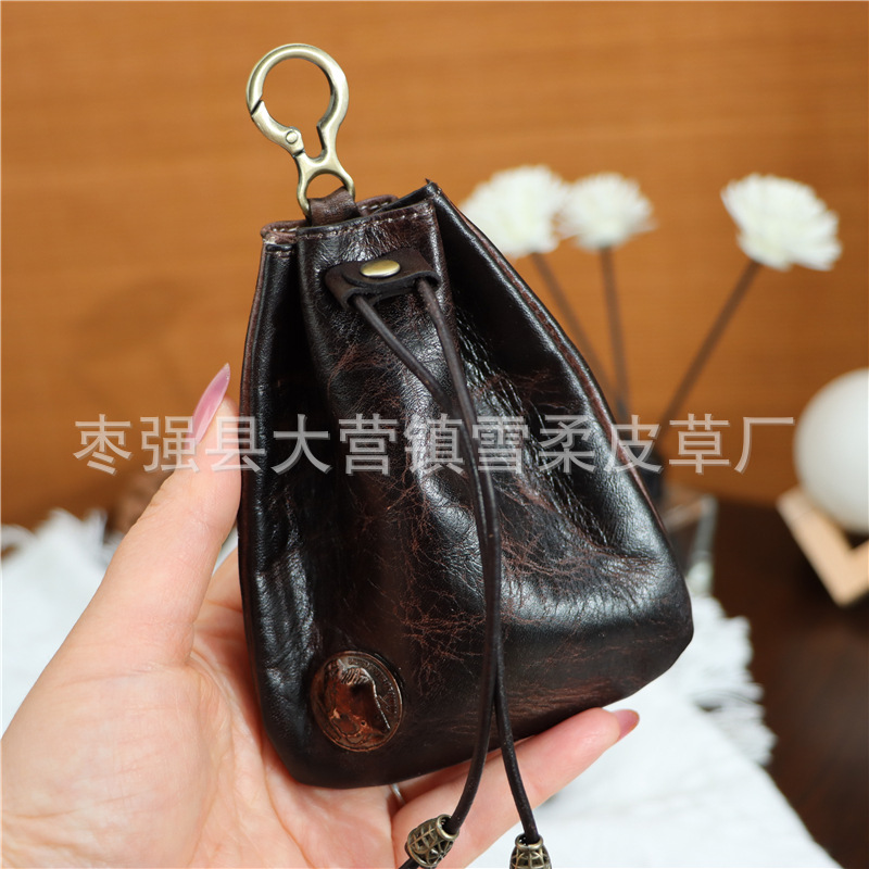 탑 레이어 소가죽 동전 지갑 자동차 키 가방 행운의 가방 깨진 실버 가방 매달려 허리 가방 남성과 여성의 번들 포켓 간단한 작은 교수형 가방스토어 가기