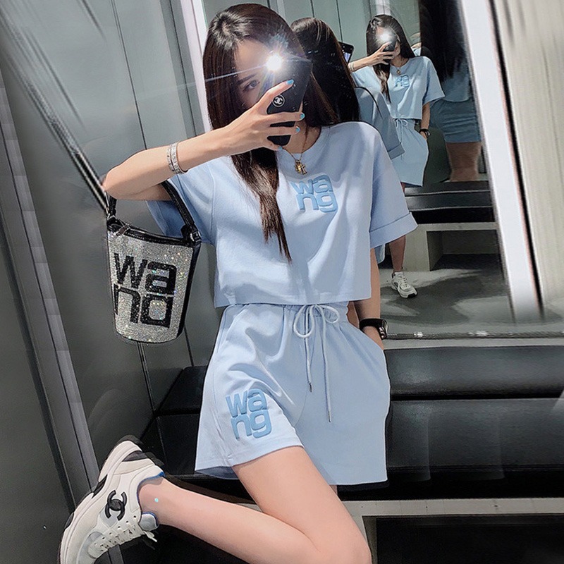 2022春夏新款韩版休闲运动套装女短款上衣宽松显瘦学生跑步两件套