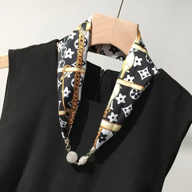 심플 마그네틱 버클 소형 실크 스카프 리본 모조 실크 진주 스카프 고급 얇은 좁은 롱 조커 목걸이 실크 스카프 도매