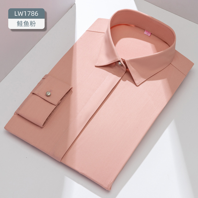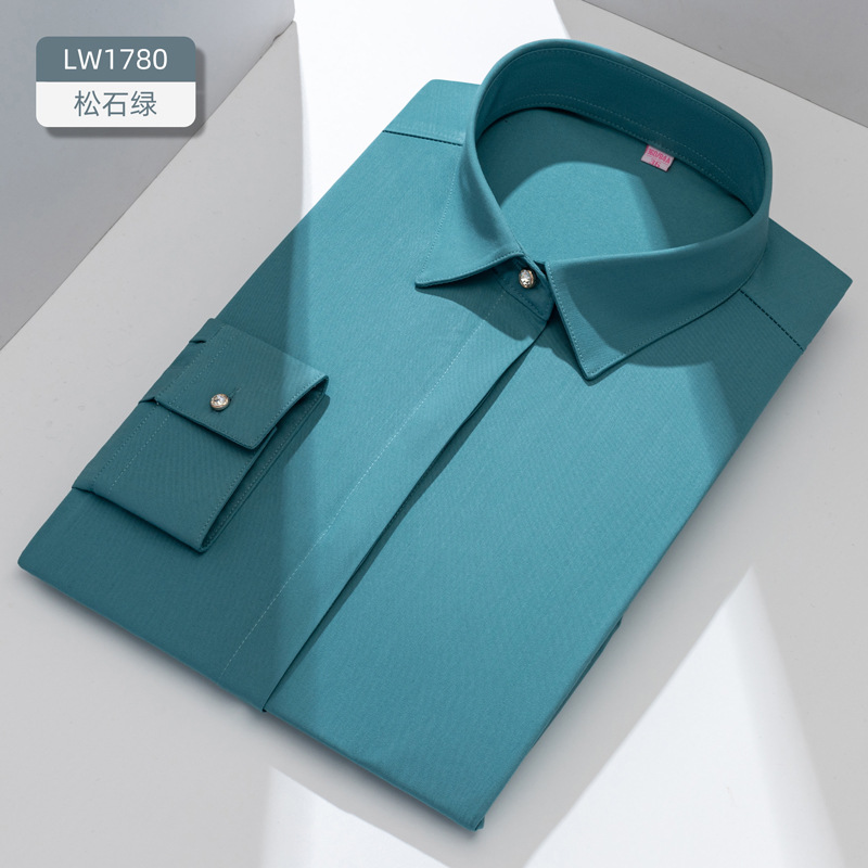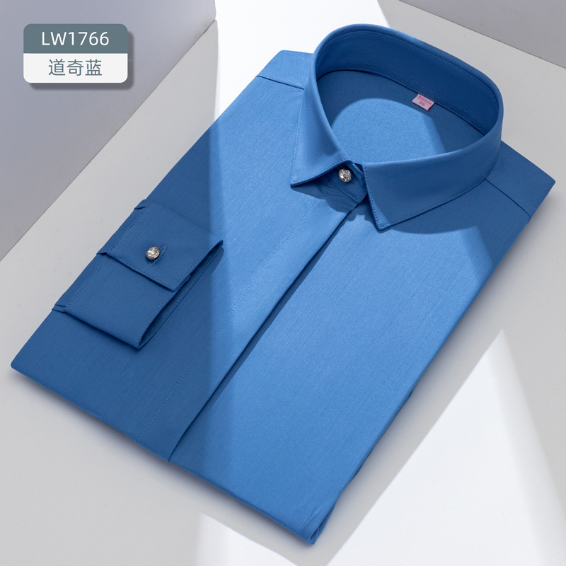 대나무 섬유 여성용 긴팔 신축성 슬림핏 정장 화이트 셔츠 도매 우아한 출퇴근룩스토어 가기