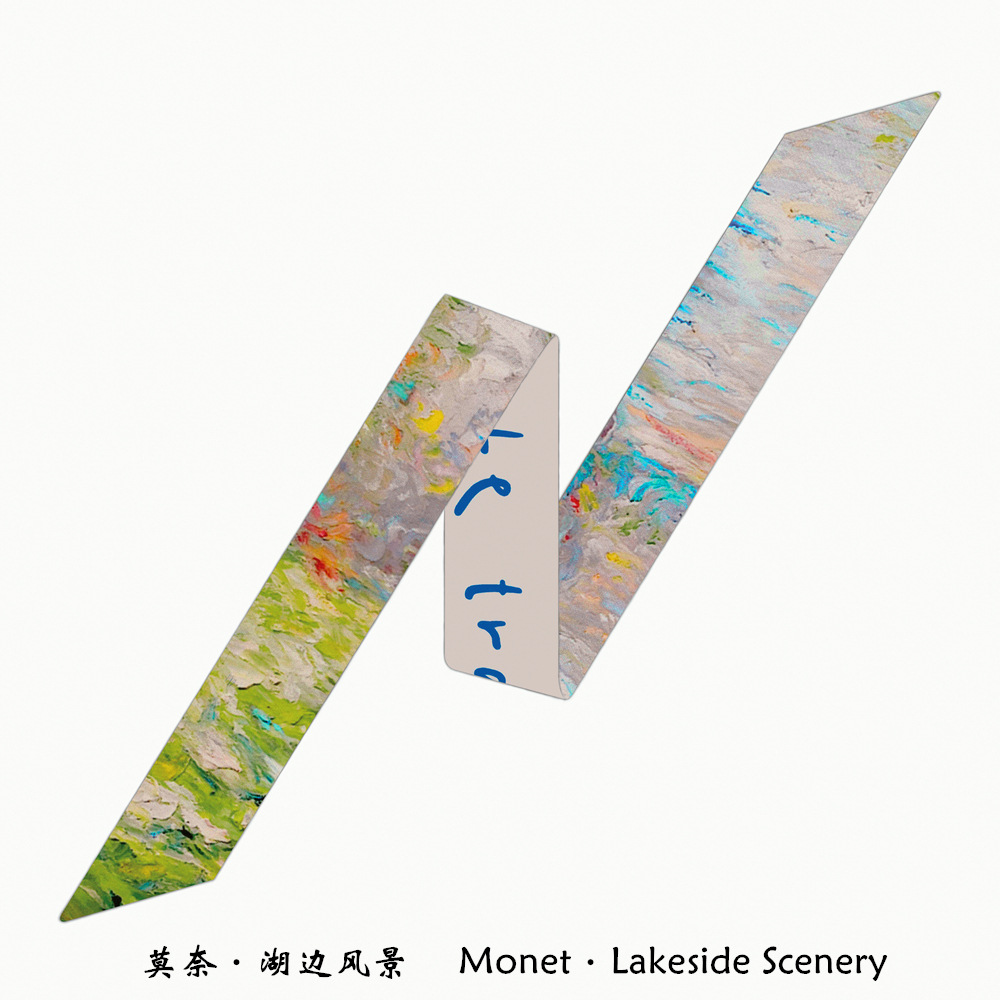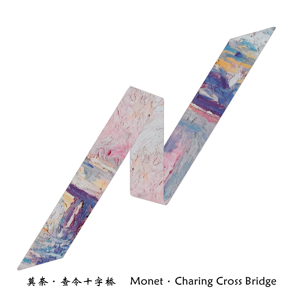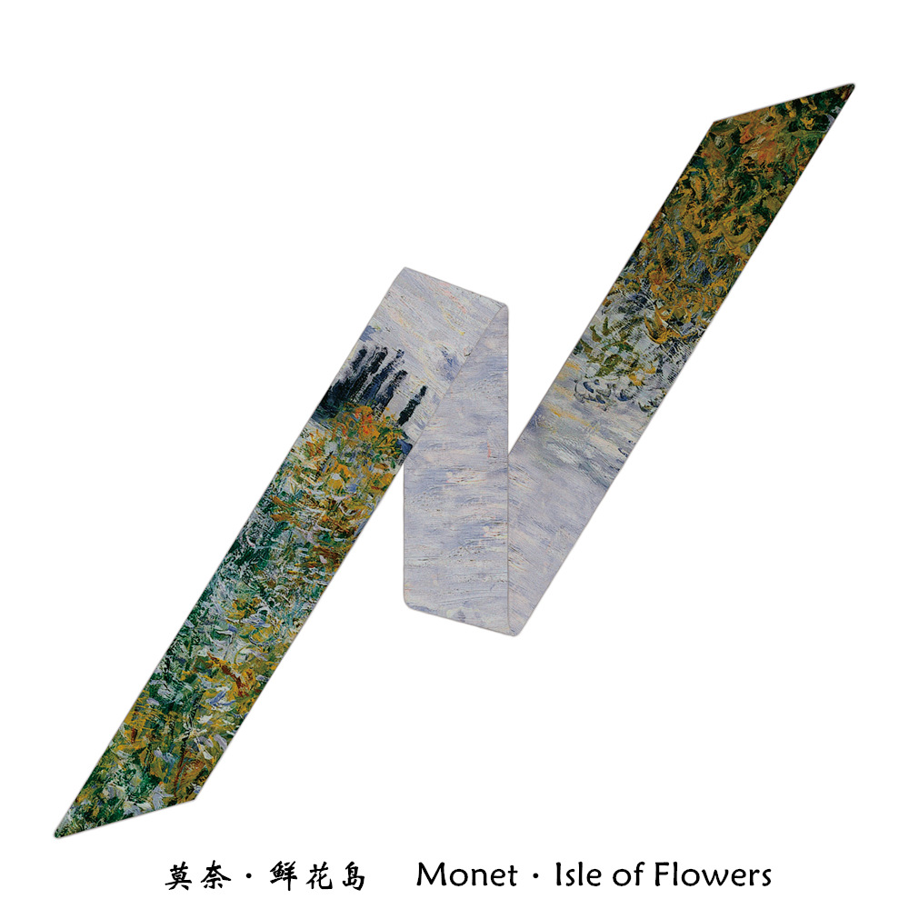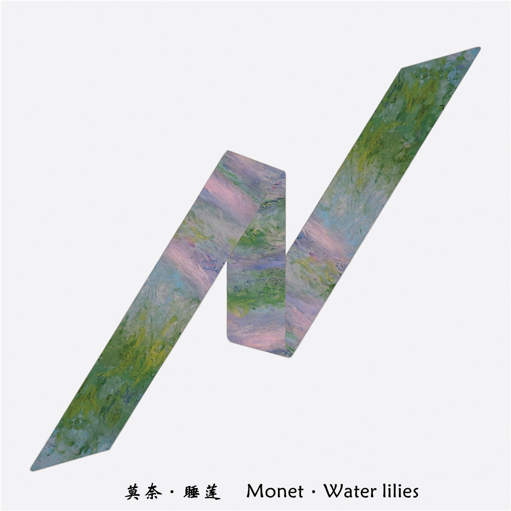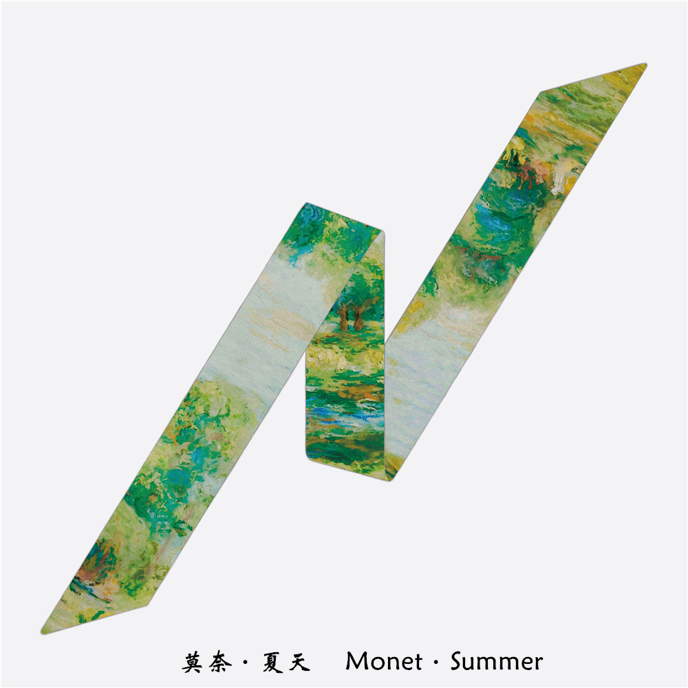 모네 유화 시리즈 물 백합 호수 풍경 여름 말미잘 긴 실크 스카프 넥타이 가방 헤어 밴드 여성용 넥타이 머리
