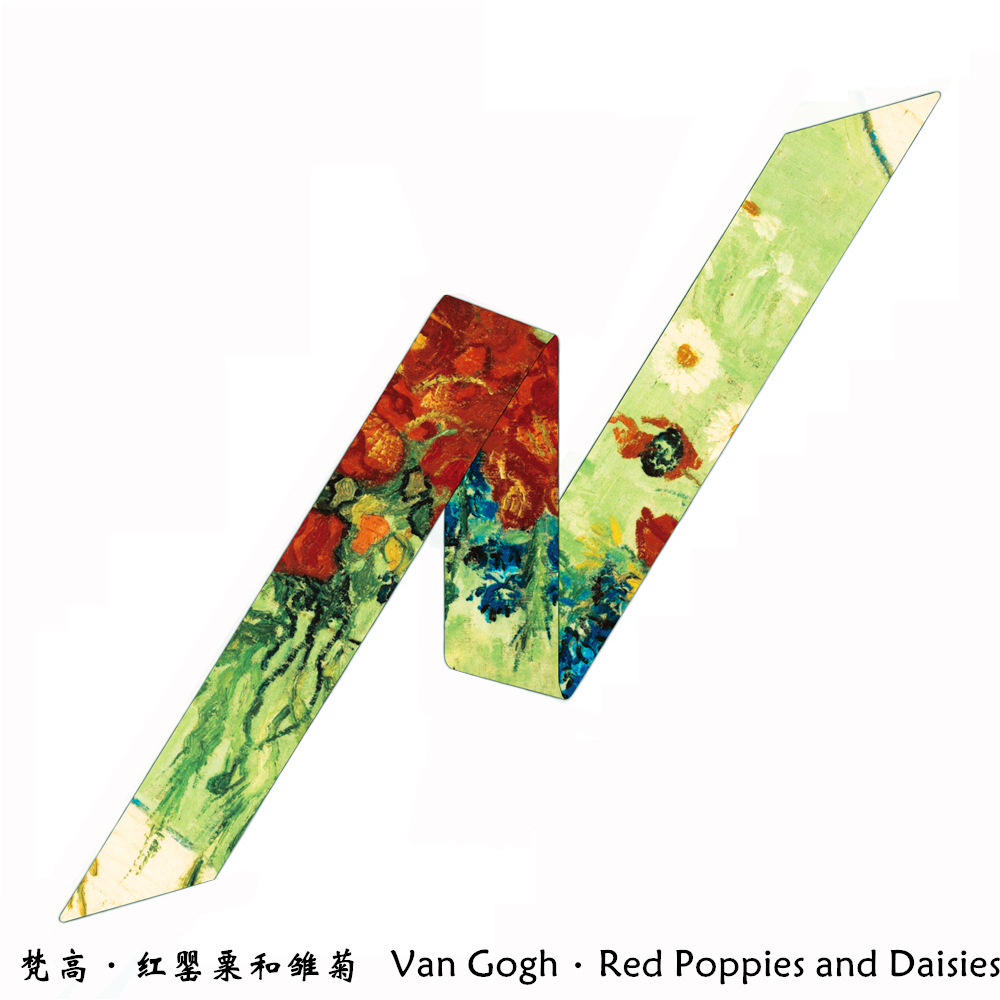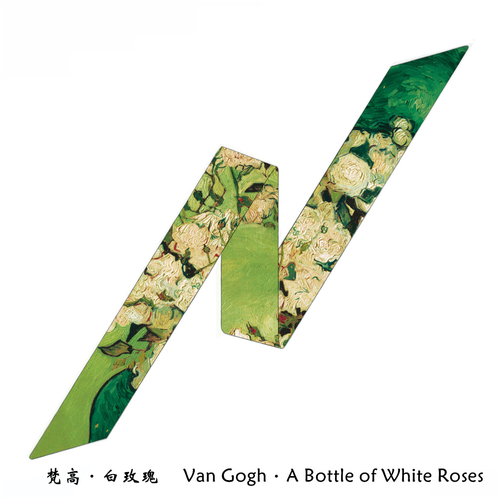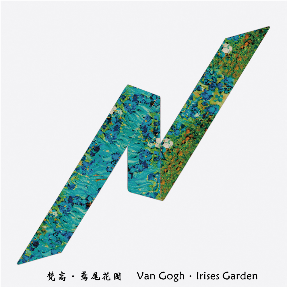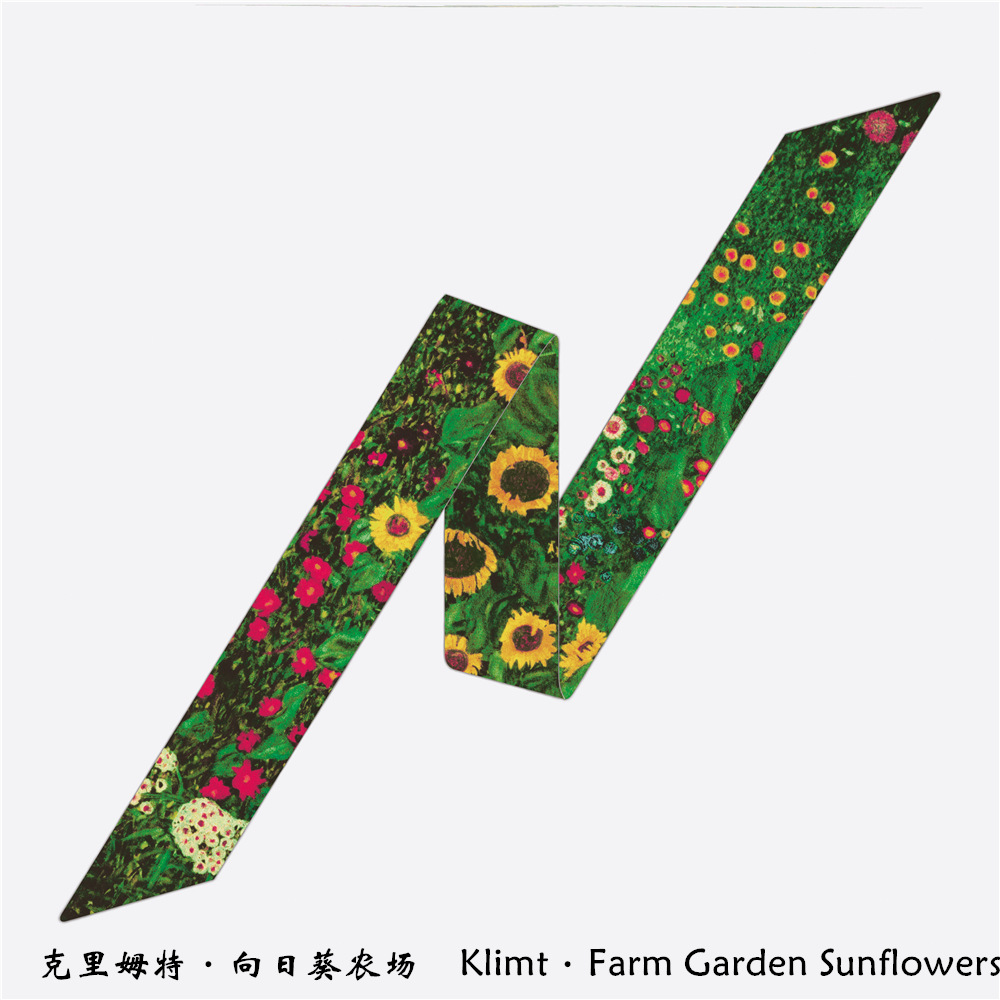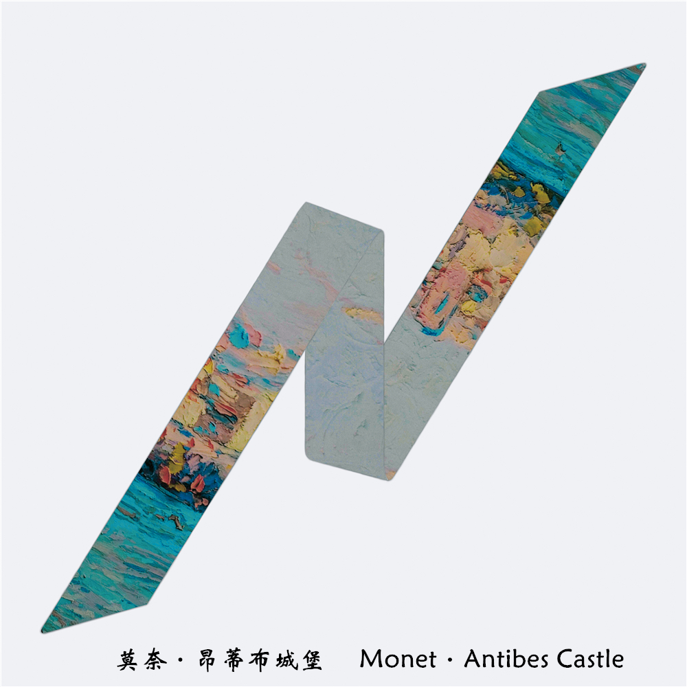 모네 유화 시리즈 물 백합 호수 풍경 여름 말미잘 긴 실크 스카프 넥타이 가방 헤어 밴드 여성용 넥타이 머리