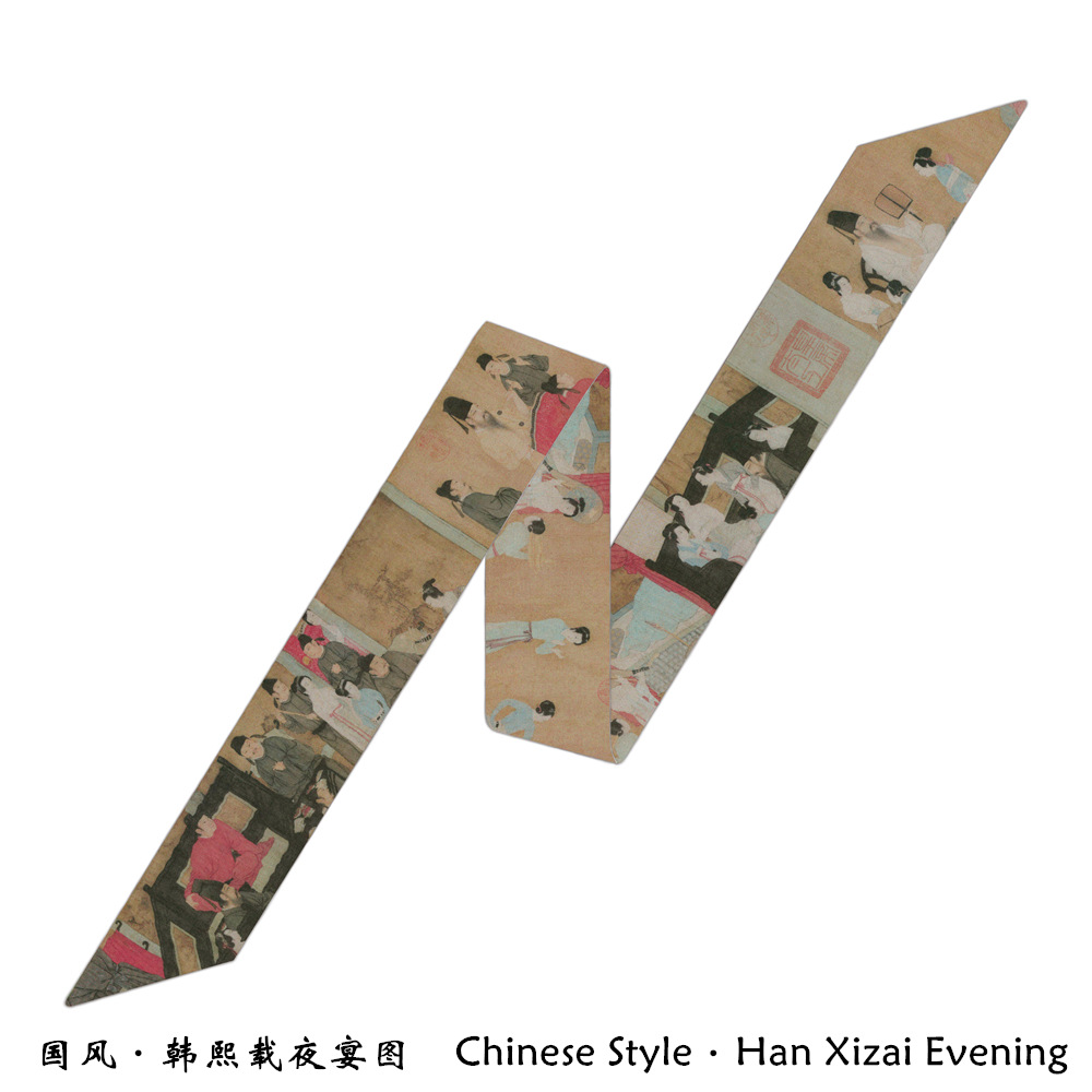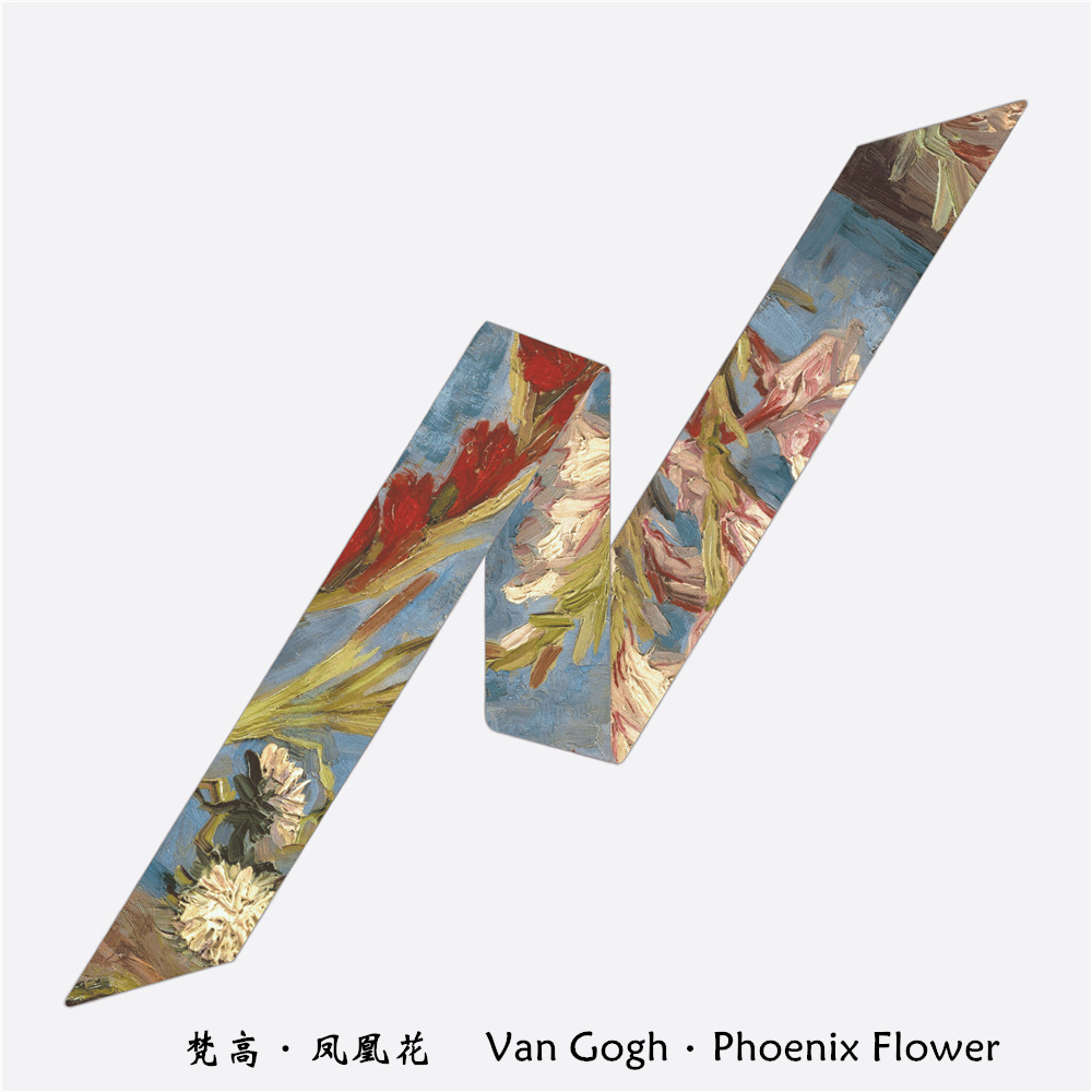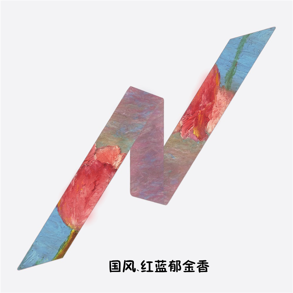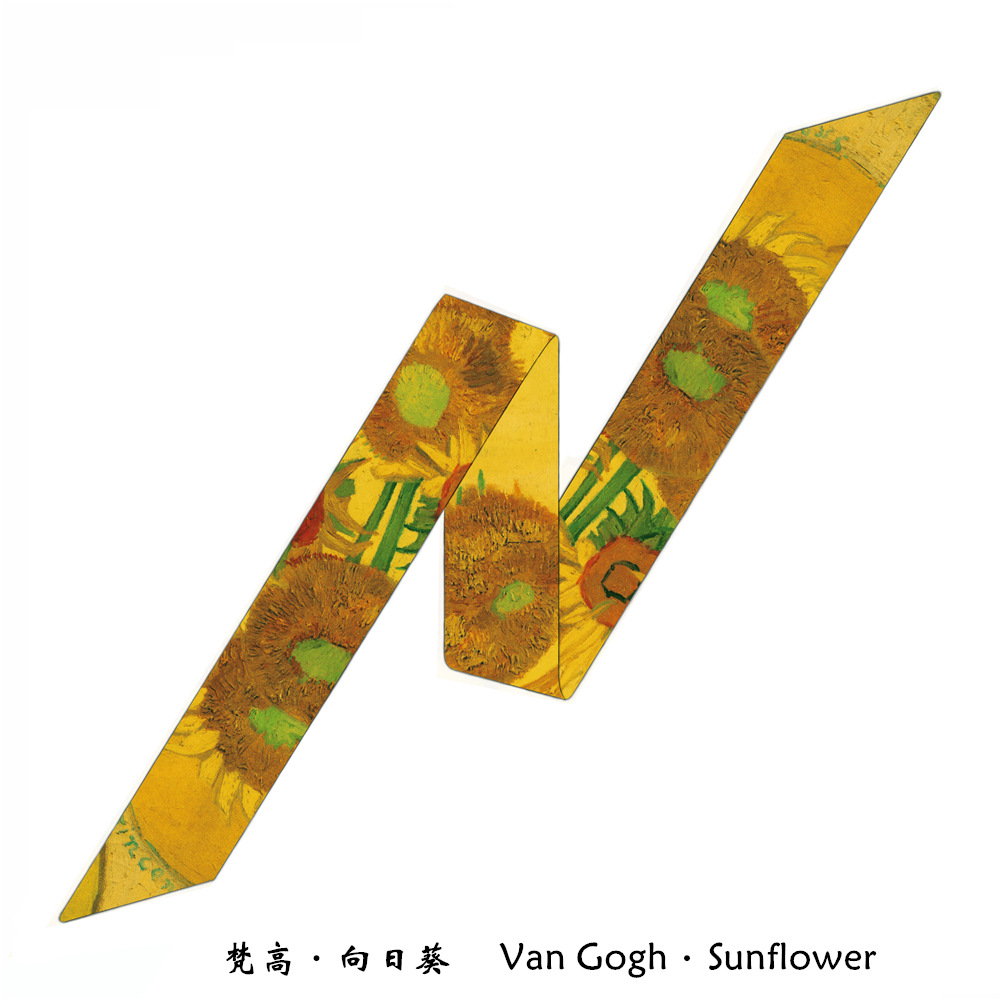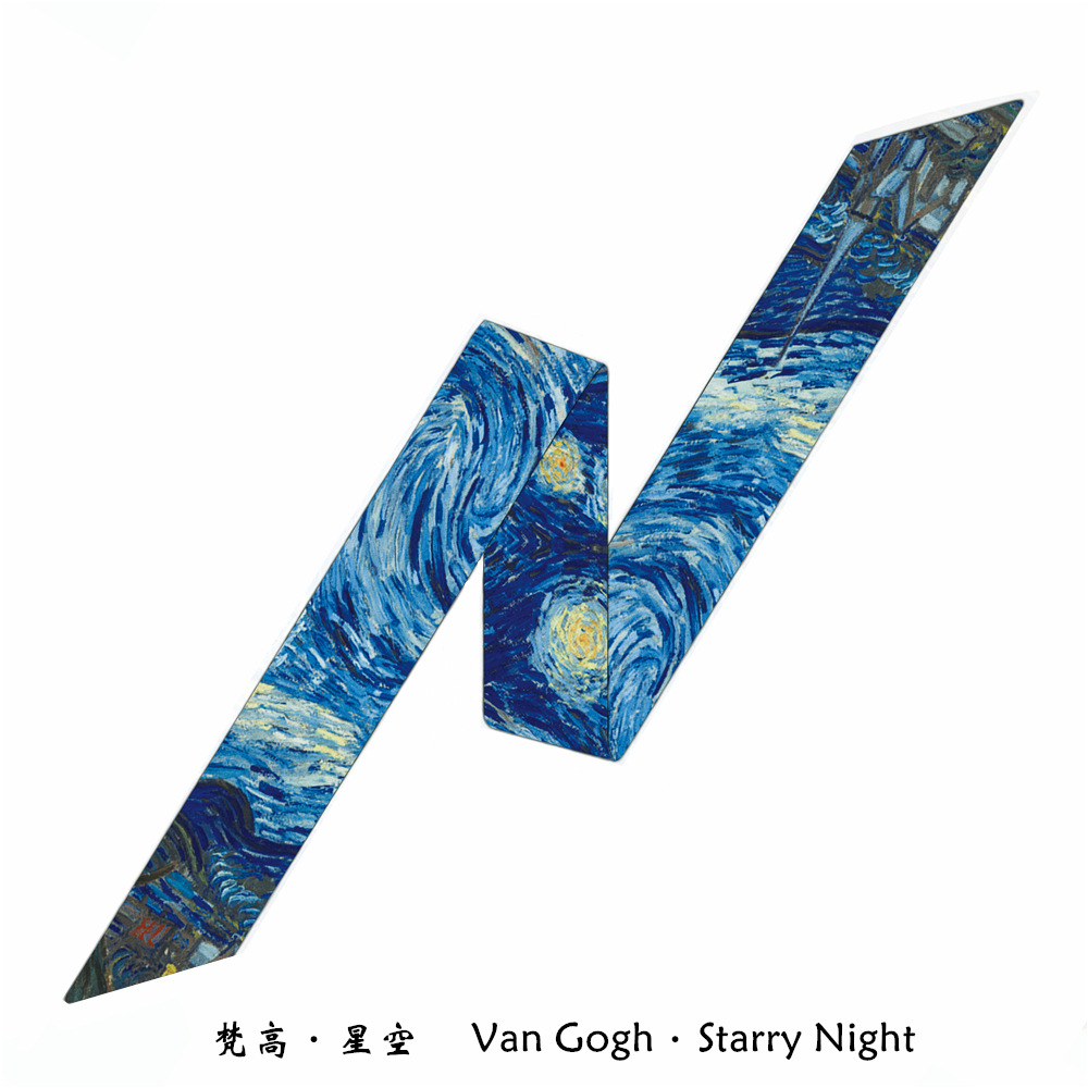 모네 유화 시리즈 물 백합 호수 풍경 여름 말미잘 긴 실크 스카프 넥타이 가방 헤어 밴드 여성용 넥타이 머리