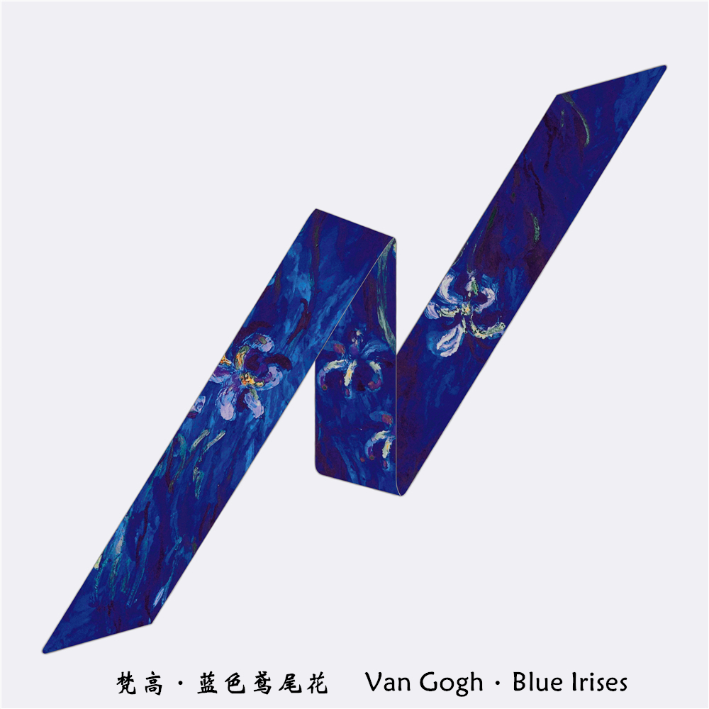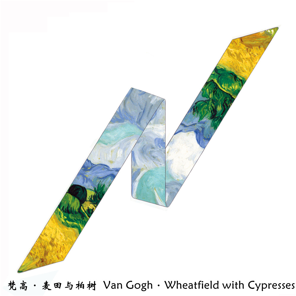 모네 유화 시리즈 물 백합 호수 풍경 여름 말미잘 긴 실크 스카프 넥타이 가방 헤어 밴드 여성용 넥타이 머리스토어 가기