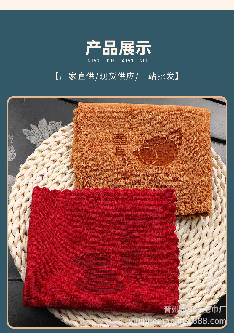 도매 티 타올 다도 행사 쿵푸 차 세트 액세서리 티 타올 인쇄 로고 부드러운 흡수성 두꺼운 섬유 인쇄 티 천
