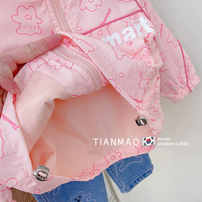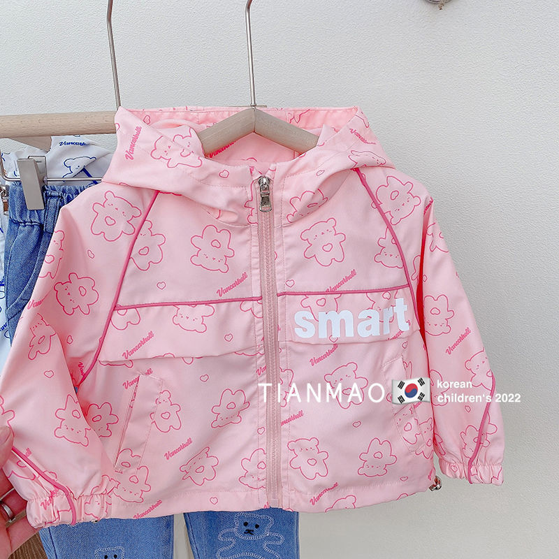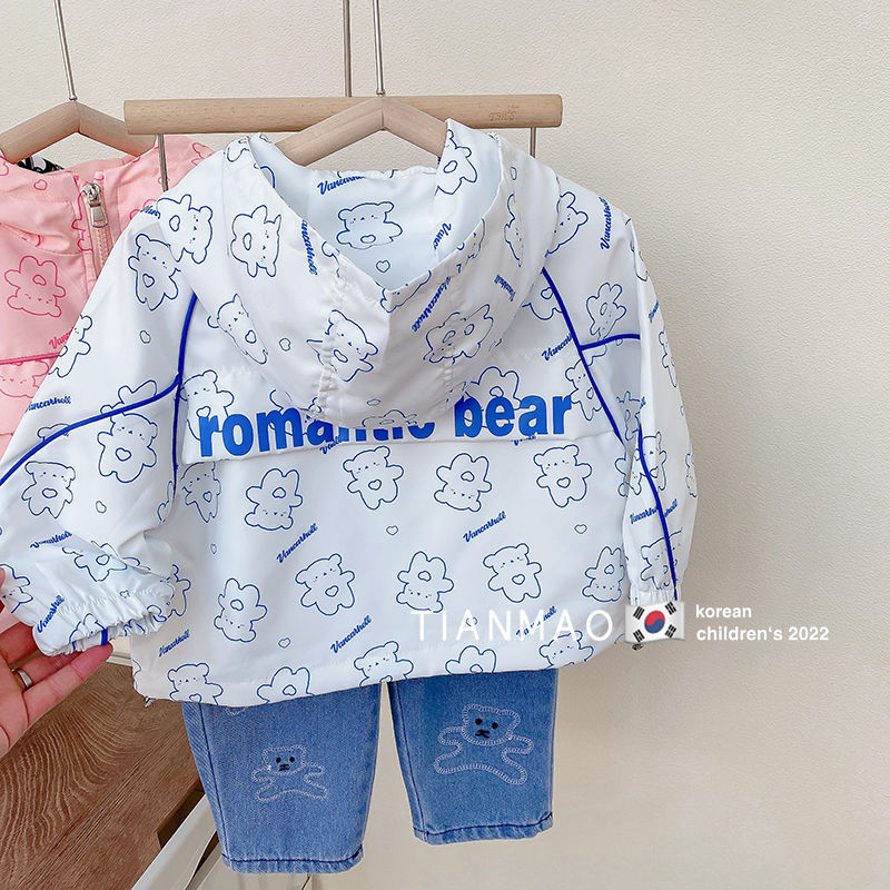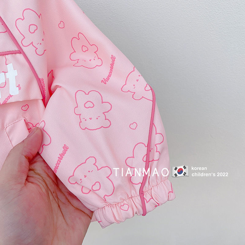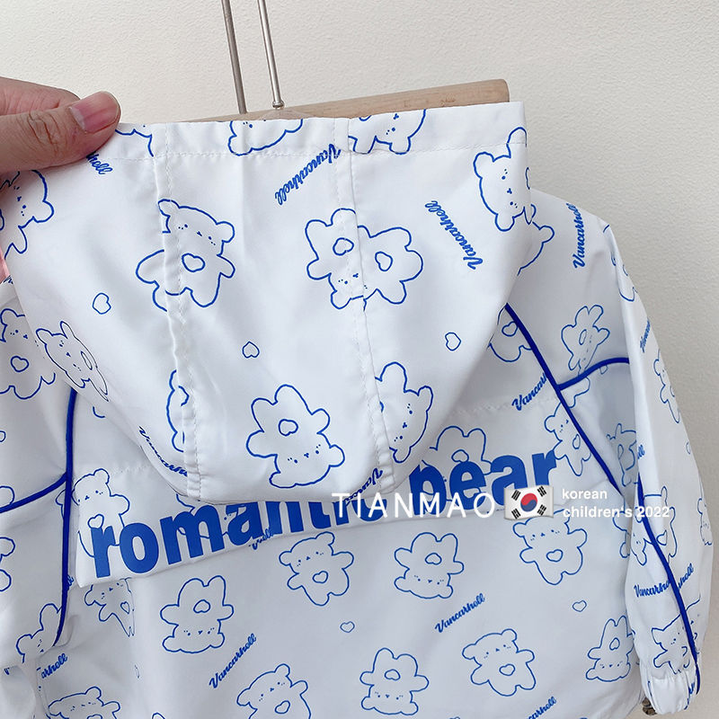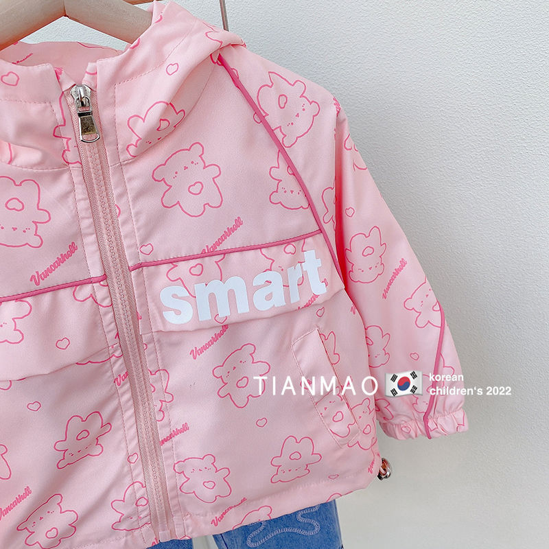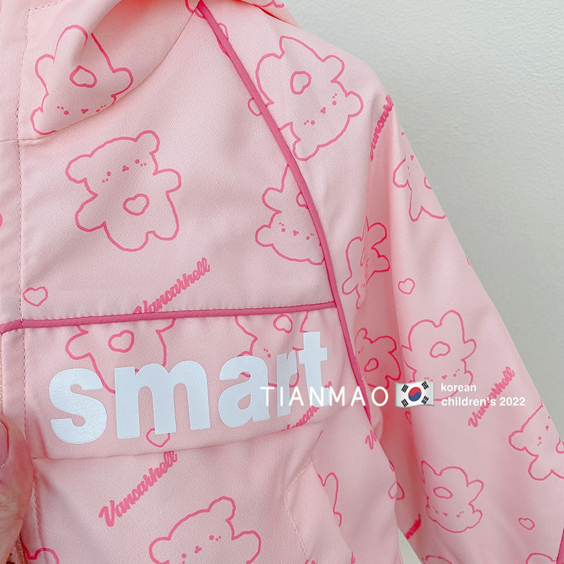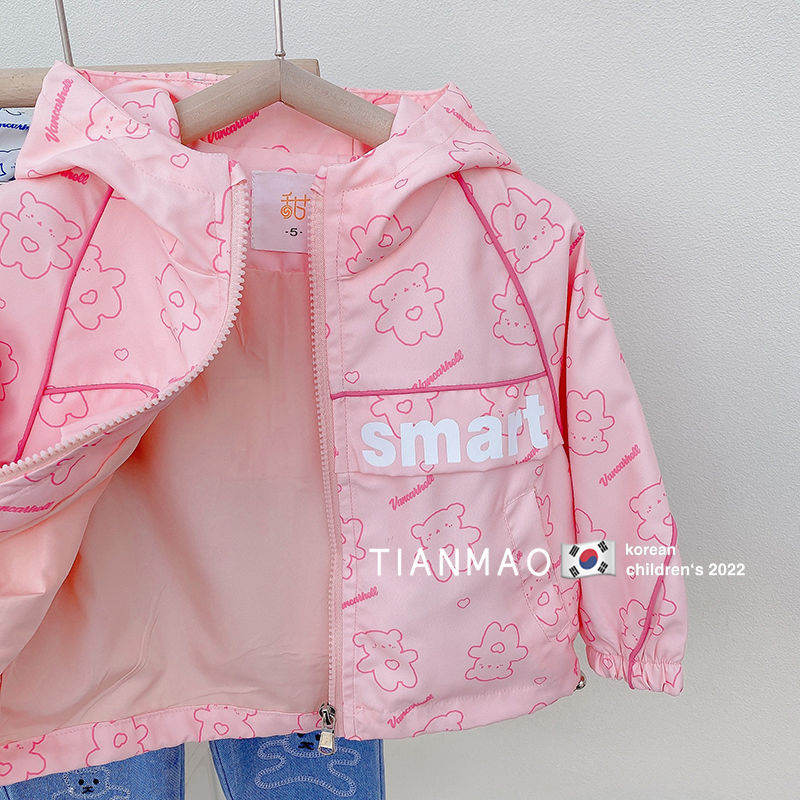 여아 봄 후드 코트 2023 러쉬 의류 어린이 한국식 곰 코트 세련된 어린이 탑 재킷
