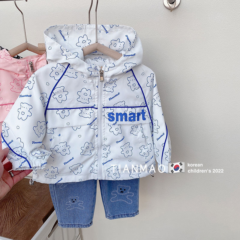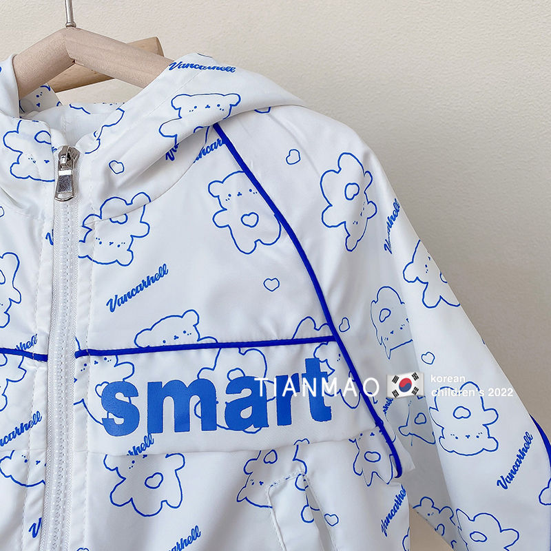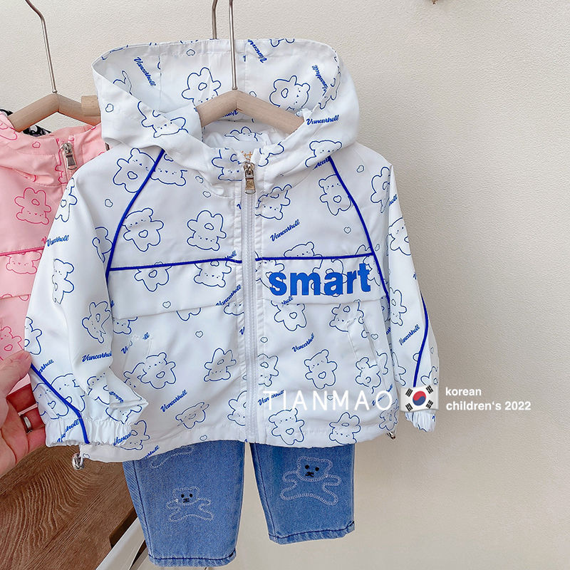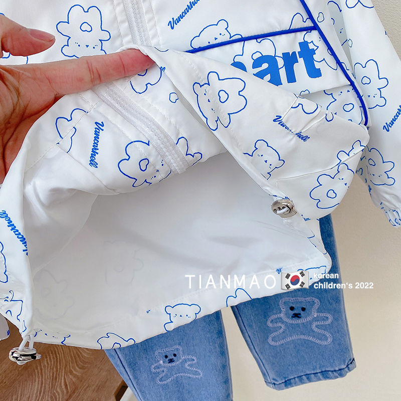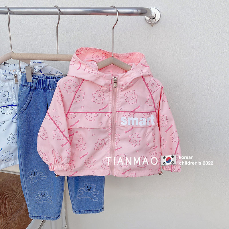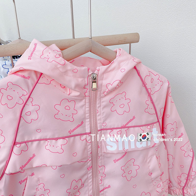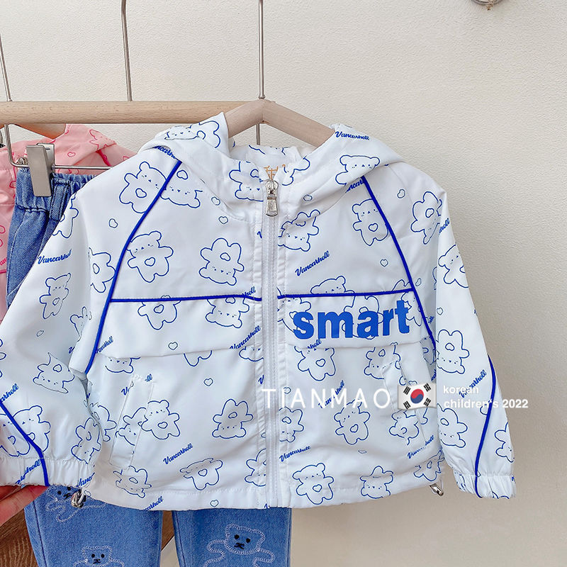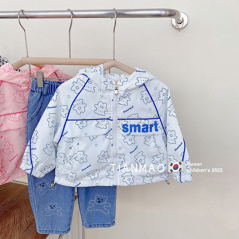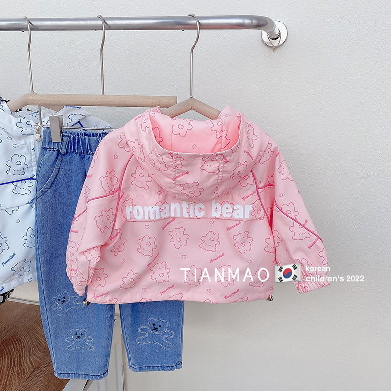 여아 봄 후드 코트 2023 러쉬 의류 어린이 한국식 곰 코트 세련된 어린이 탑 재킷