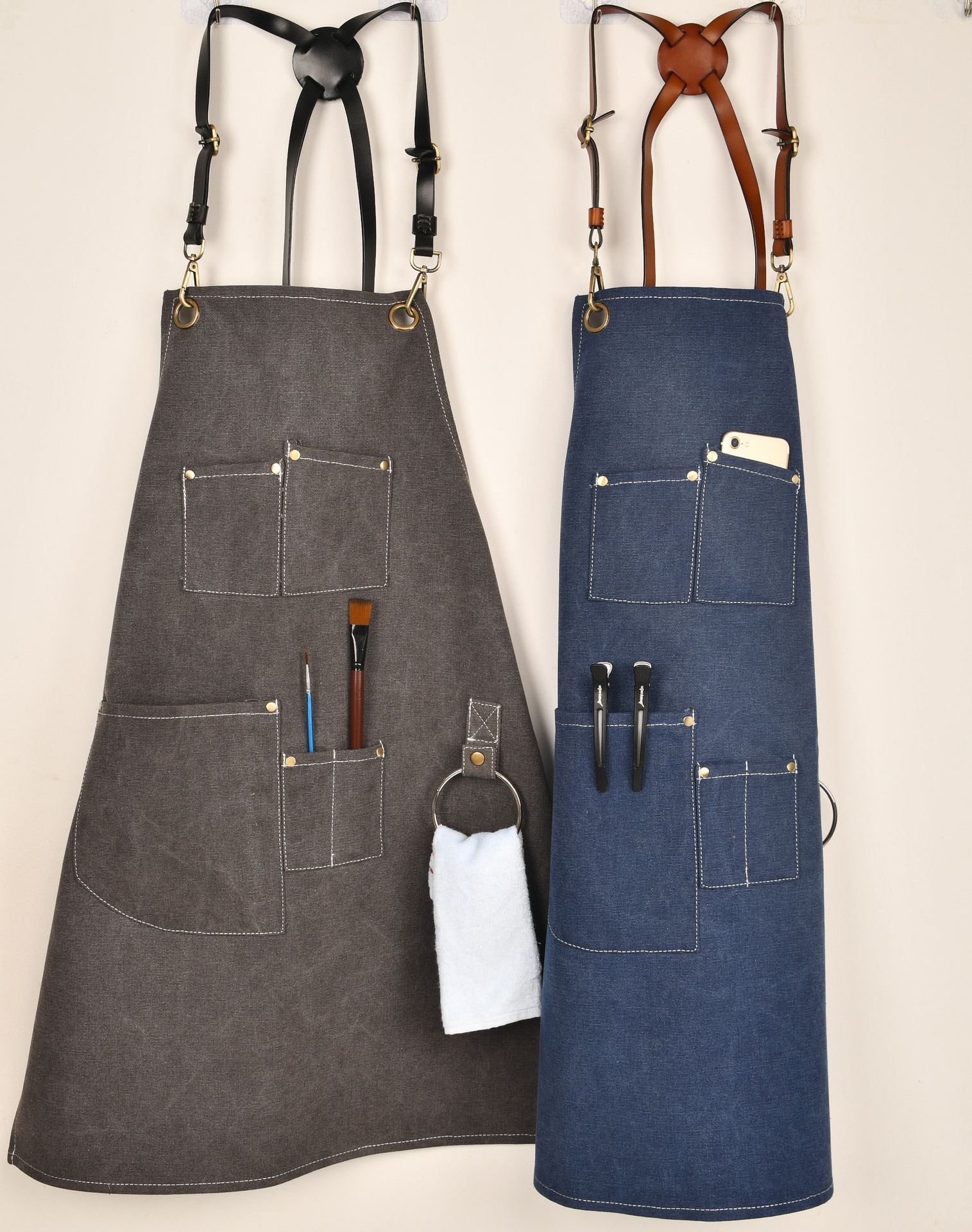 맞춤형 소가죽 어깨끈 데님 앞치마 커피숍 이발사 패션 작업복 맞춤형스토어 가기