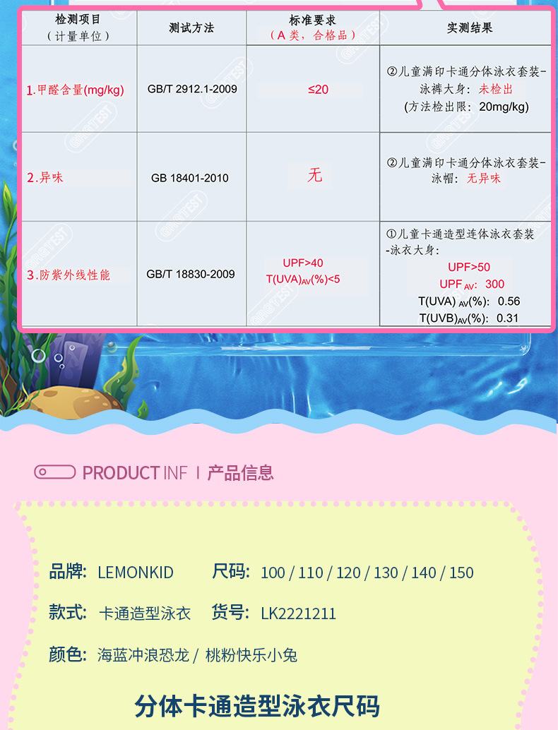 (1)商品名称:卡通造型分体泳衣